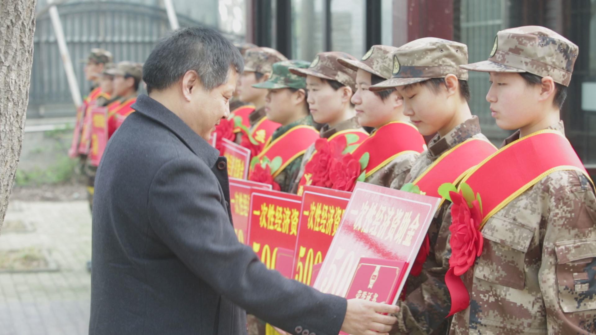 3月25日上午,武装部副部长石玉平一行三人来到新乡军分区女兵役前训练基地,组织我校2021年上半年入伍女生进行座谈,并向他们发放了一次性经济资助金和荣誉证书。