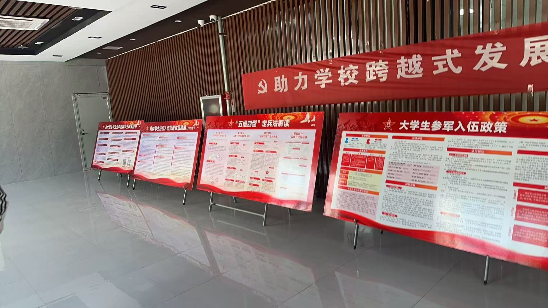 学校征兵工作办公室组织退役大学生征兵宣讲团进行线上线下宣讲,通过悬挂横幅标语、张贴宣传海报、设立宣传展板、发放征兵宣传手册等方式,向广大在校生解读和宣讲征兵政策,解答学生疑问,畅通征兵工作渠道。