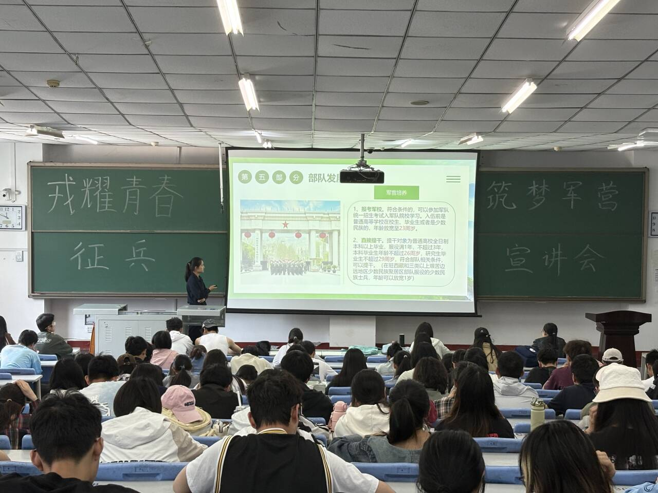 各书院、学院按照征兵宣传月活动要求,积极开展一次“火热军营 精彩人生”主题班会、一次征兵政策宣讲会、一次征兵相关活动,以丰富的征兵宣传形式,大力营造浓厚征兵宣传氛围。