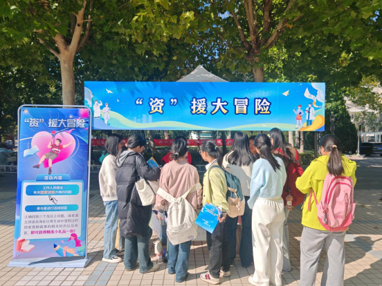 在“资”援大冒险环节,志愿者们向学生普及资助政策。通过答题挑战的方式,激发学生的参与热情,宣传资助政策。此外,学生还可以通过分享身边的真实励志感恩故事来参与活动,进一步增强了活动的互动性和教育意义。