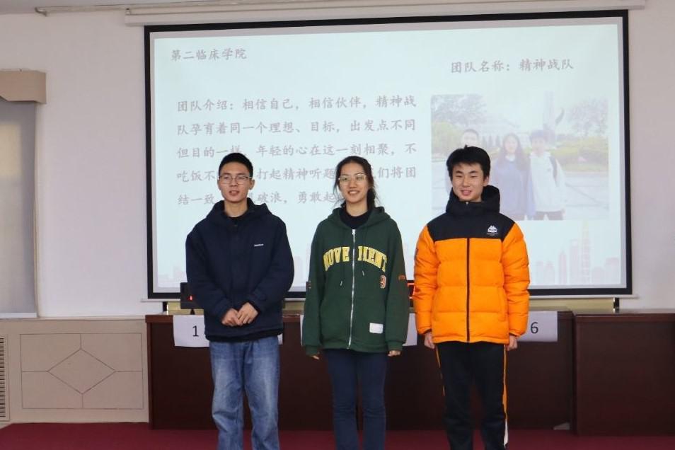 研究生代表队、基础医学院学生代表队、医学检验学院学生代表队、护理学院学生代表队、第一临床学院学生代表队、第三临床学院学生代表队