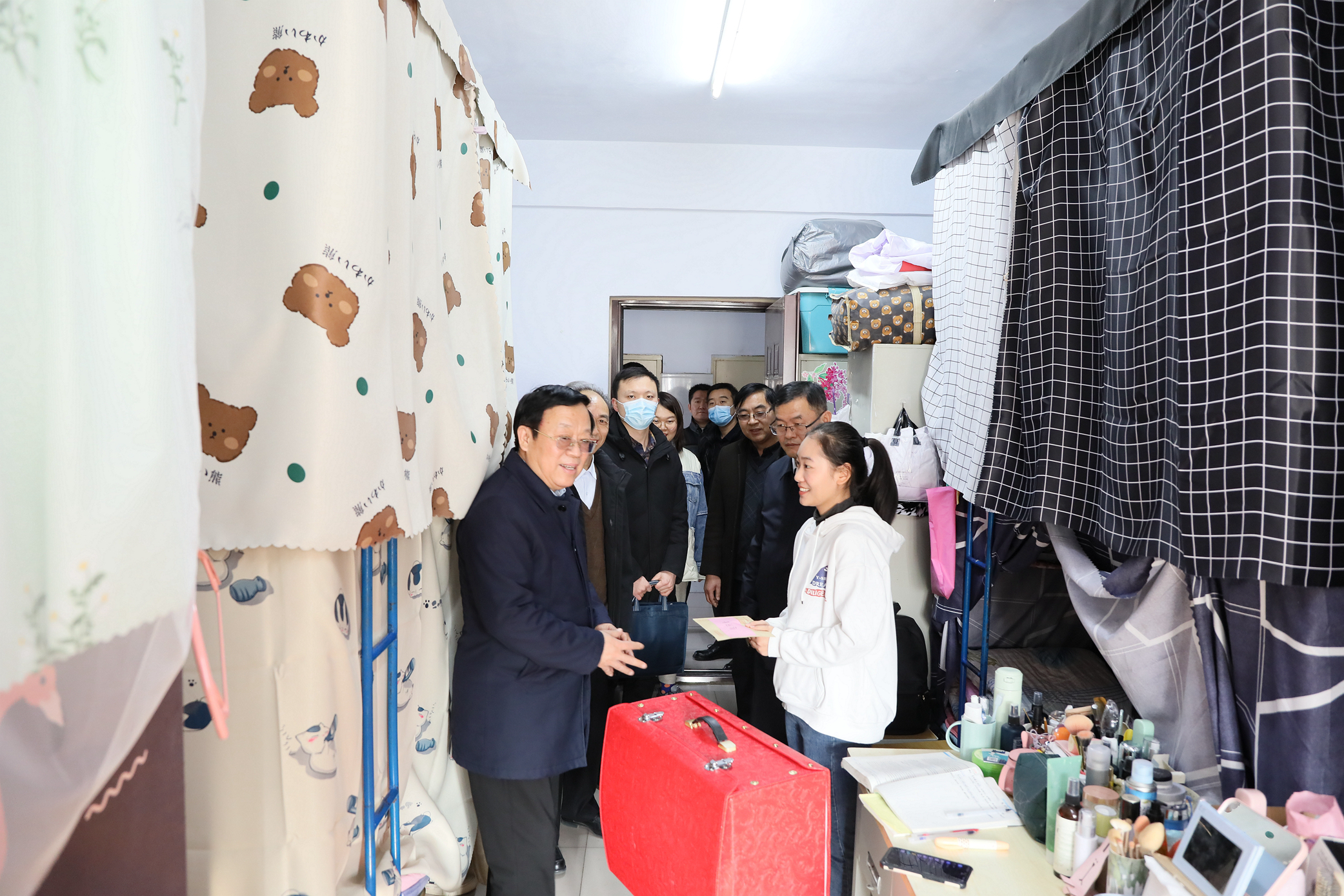 12月22日,华亿在线手机版(大中国区)校党委副书记郝红军、副校长雒保军在学生工作部及相关学院学生工作负责人和辅导员的陪同下,分别前往学生公寓看望了贫困学生代表,为他们送去了学校的问候和关爱。