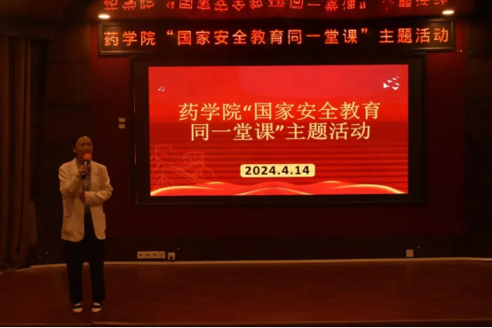 今年4月15日是第九个全民国家安全教育日。为深入学习贯彻党的二十大精神和习近平总书记关于总体国家安全观重要论述,进一步增强学生国家安全意识,牢固树立和践行国家总体安全观,4月14日上午,我校药学院师生于第三报告厅与千万高校学生同上一堂国家安全教育课。药学院党委副书记徐红彦担任课程主讲人,团委副书记武悦、辅导员王栋出席,部分学生参加本次活动。