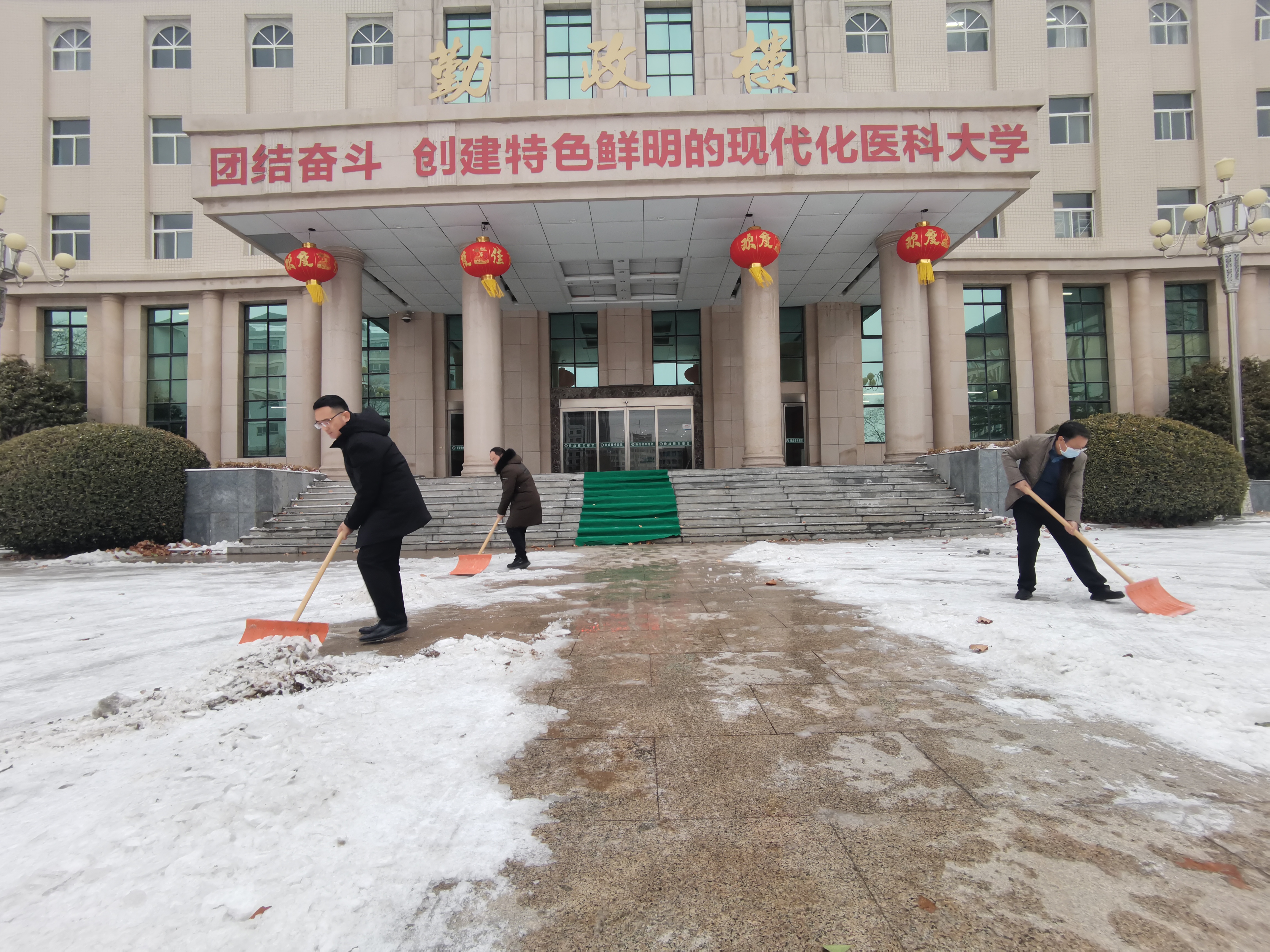 粉妆玉砌,银装素裹。2月20日,一场大雪翩然而至,瑞雪兆丰年,大家沉浸在雪花纷飞的喜悦中,但道路积雪结冰也给师生日常上班和出行带来了诸多不便。为确保雪后道路通畅和师生出行安全,2月21日一大早,机关组织支部坚持“快”字当先,充分发挥基层党组织战斗堡垒作用,立即组织党员干部开展清雪破冰行动,为师生安全出行保驾护航。