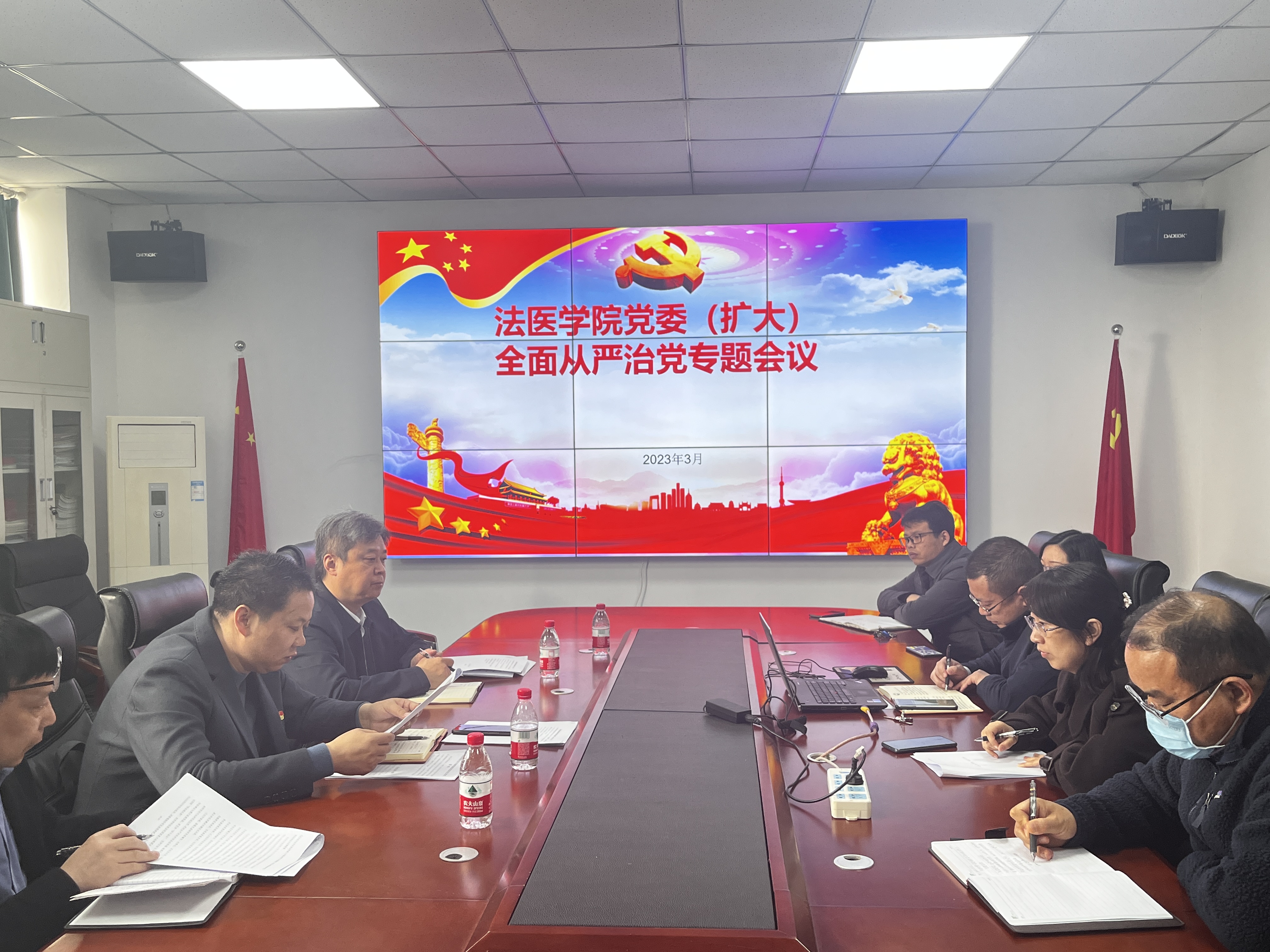(文/涂飞 图/吴琼)3月21日,法医学院在求真楼四楼会议室召开学院党委(扩大)全面从严治党专题会议,学院党委书记赵宝强、院长杨志军、副院长付升旗、何广杰出席会议,全体科级干部参加会议。会议由赵宝强主持。