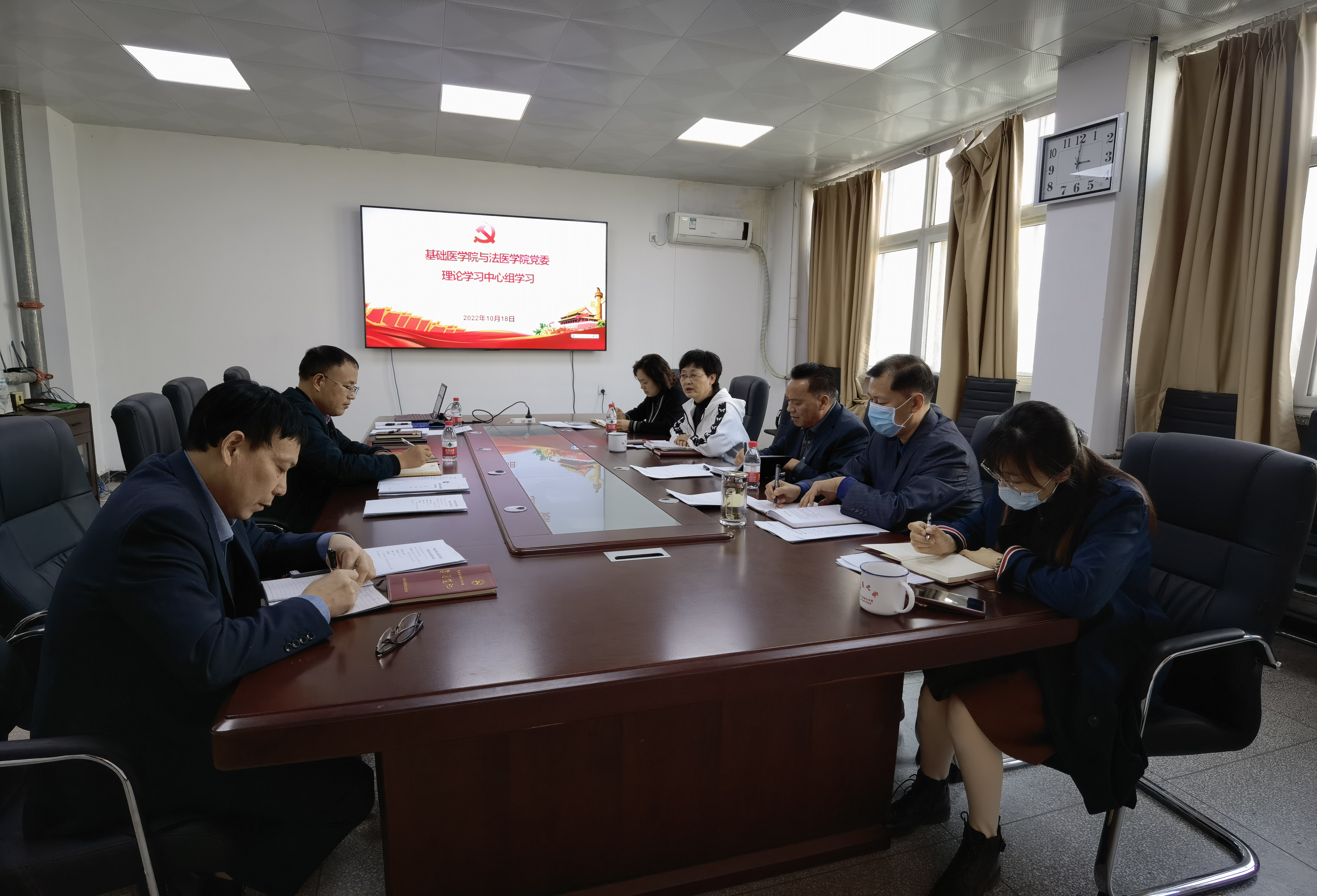 (文/图吴文斌)10月18日下午,学院党委理论学习中心组在求真楼基础医学院第二会议室进行集体学习。基础医学院与法医学院党委书记王宏玲,基础医学院院长任峰,基础医学院与法医学院党委副书记李照勇、白婕,法医学院副院长付升旗、何广杰参加会议。法医学院院长王庆志列席会议。会议由王宏玲主持。