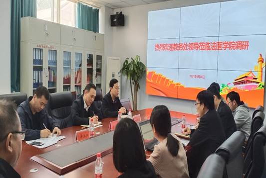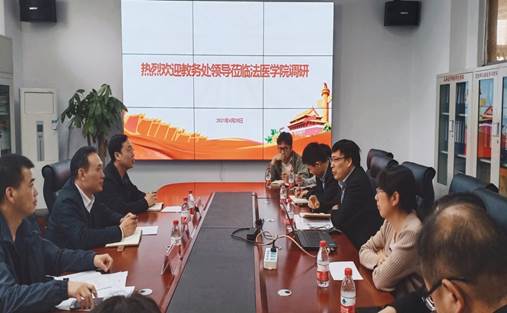 付升旗副院长首先代表学院师生对任处长一行来我院指导教学工作表示热烈欢迎。教学管理与专业建设办公室主任汤政给任处长等详细汇报了法医学专业的核心课程及学时安排、学生学习效果等情况,并就实践教学安排、选修课开设等方面提出了建议。科室主任、教师代表、学生代表根据教学和学习中遇到的问题发表了各自看法。付升旗副院长对学院师生提出的意见和建议进行了概括总结,重点强调了实践教学内容安排应符合法医学专业特色,课程学时变更应符合教学实际情况,课程安排应注重教师专业性和学生满意度。在调研过程中,任玉明副处长对我院师生提出的问题交换了意见并给出了相应的答复。