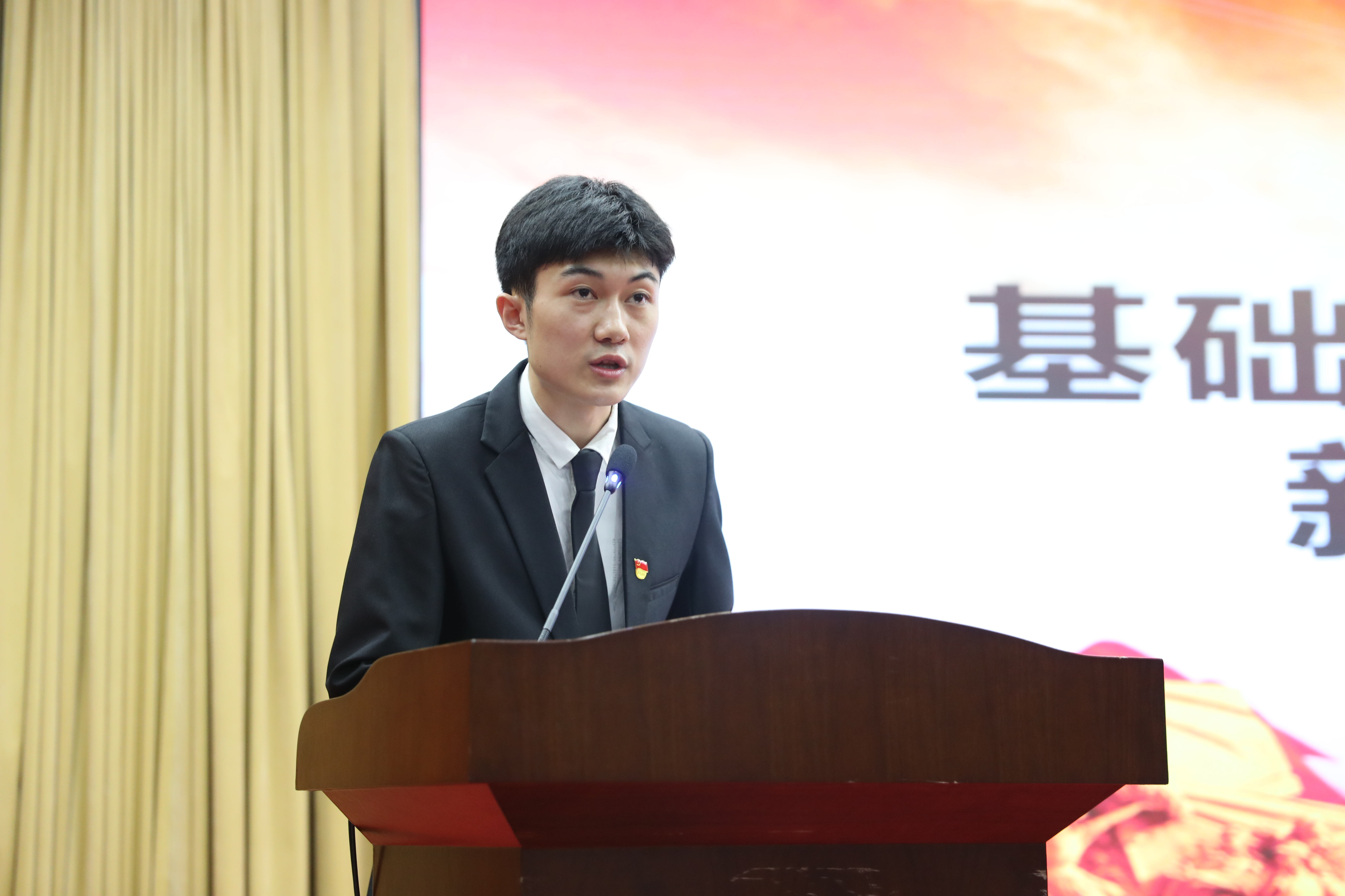 仪式在雄壮的《国际歌》声中拉开帷幕,老党员代表亲自为新党员佩戴党徽,赠送入党礼物。王宏玲带领全体党员面向党旗庄严宣誓,“我志愿加入中国共产党,拥护党的纲领,遵守党的章程……”,一句句响亮的青春誓言,表达出了青年党员们为党的事业肩负起时代责任和民族使命的坚定决心。