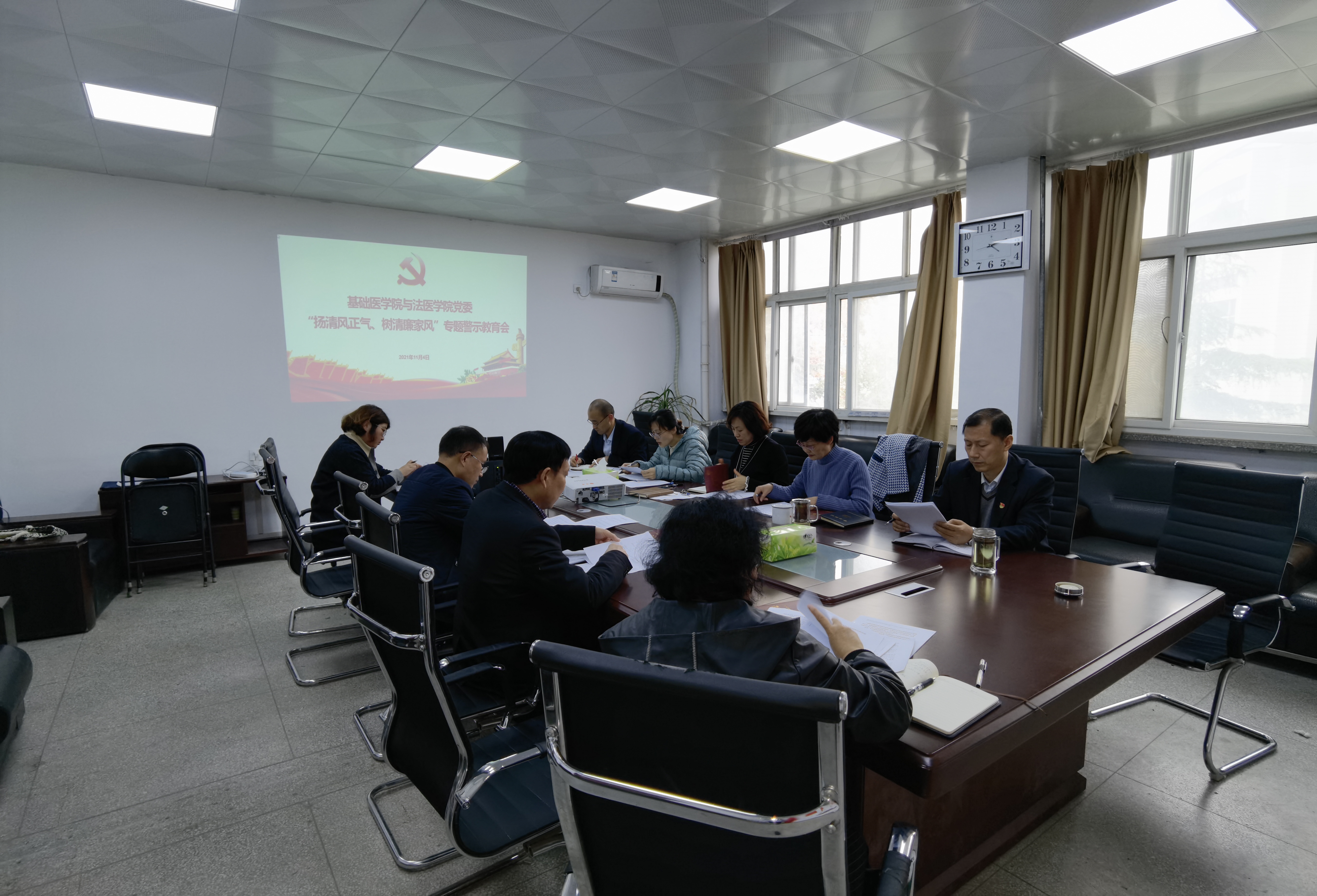 (文/吴文斌 图/涂飞)11月4日下午,基础医学院与法医学院党委在老实验楼东配楼三楼基础医学院第二会议室召开2021年“扬清风正气、树清廉家风”活动动员暨专题警示教育会议。基础医学院与法医学院党委书记王宏玲,基础医学院院长任峰,基础医学院与法医学院党委副书记李照勇、白婕,基础医学院副院长高福莲、赵晓生及法医学院副院长付升旗、何广杰参加会议。会议由王宏玲主持。