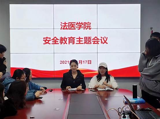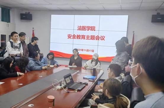 为加强学生宿舍安全管理,做好疫情防控期间教育管理工作,进一步提高学生安全意识,防护意识,保障学生安全。11月17日,法医学院在老实验楼443会议室组织召开学生干部安全教育工作会议。法医学院团委副书记王敬、辅导员吴琼以及全体学生干部参加了本次会议。