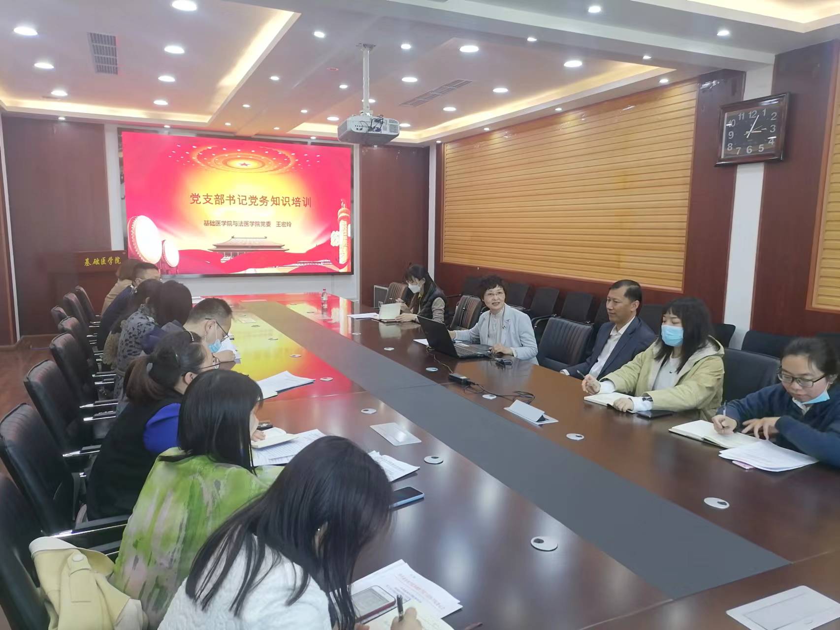 (文/图 孙锦)为进一步强化基层党支部书记的主体责任,发挥党支部书记在基层党务工作中的骨干和带头作用,4月13日下午,基础医学院与法医学院党委在求是楼六楼会议室举办党支部书记党务知识培训会。基础医学院与法医学院党委书记王宏玲、基础医学院与法医学院党委副书记李照勇、白婕及全体党支部书记参加培训。