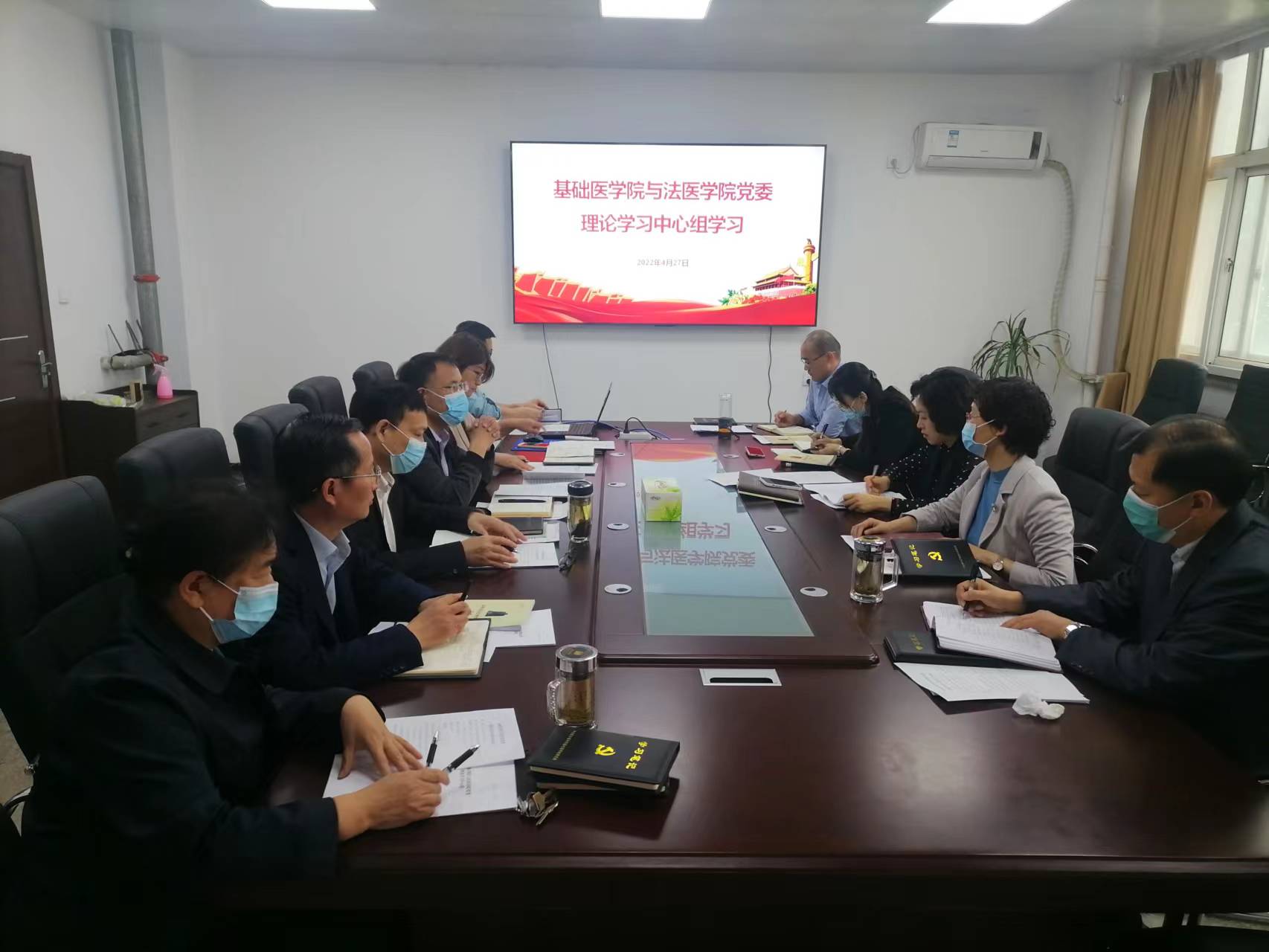 (文/吴文斌 图/张博)4月27日上午,学院党委理论学习中心组在求是楼基础医学院第二会议室进行集体学习。基础医学院与法医学院党委书记王宏玲,基础医学院院长任峰,基础医学院与法医学院党委副书记李照勇、白婕,基础医学院副院长高福莲、千新来、赵晓生及法医学院副院长付升旗、何广杰参加会议。会议由王宏玲主持。