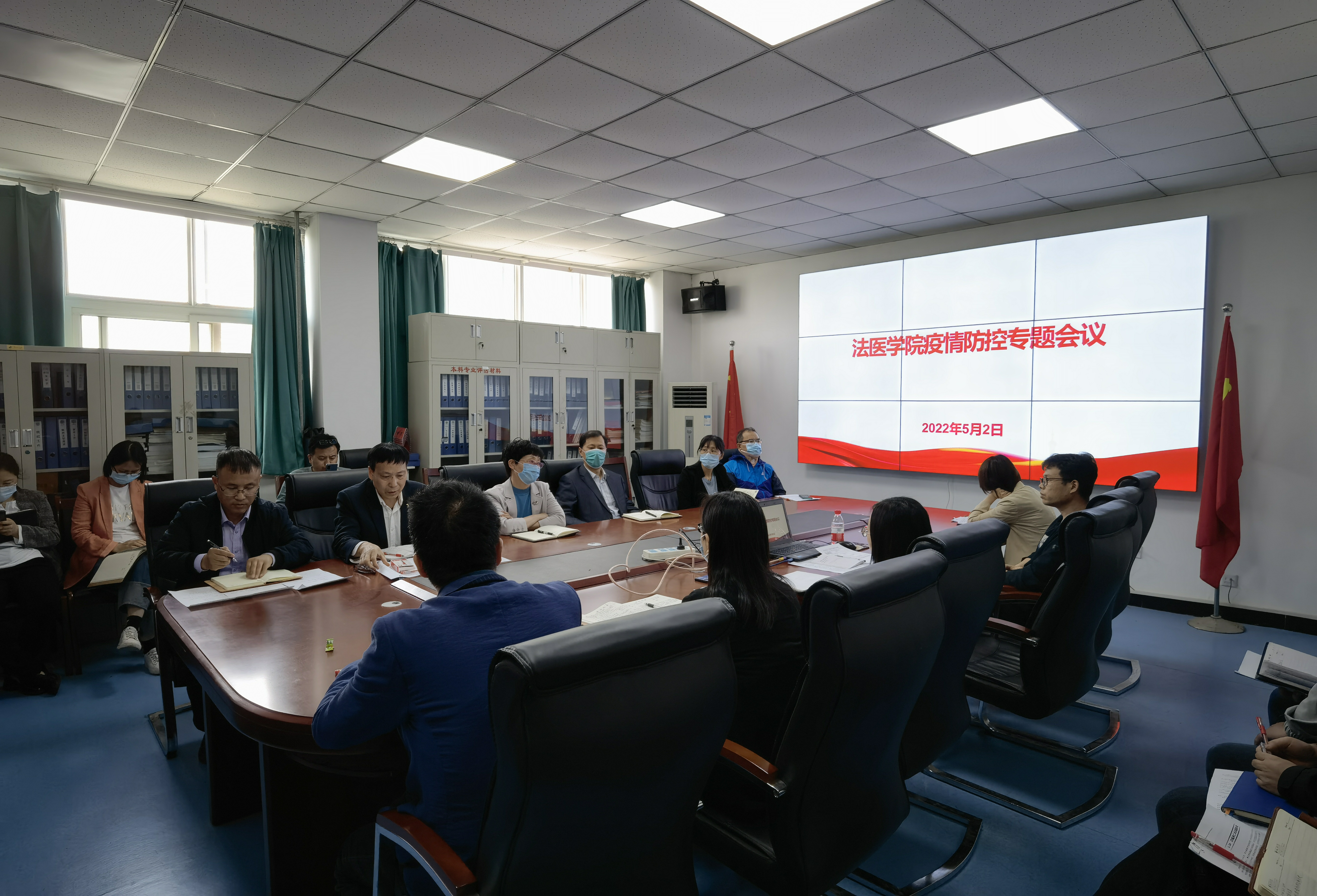 (文/图 涂飞)5月2日下午,我院在求真楼4楼会议室召开疫情防控专题会议。基础医学院与法医学院党委书记王宏玲、副书记李照勇、白婕,法医学院副院长付升旗、何广杰出席会议,学院党支部书记、科室主任及全体教职工参加了会议。王宏玲主持会议。