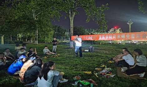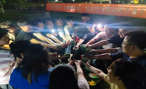 乐声悠扬,清风袭人,美丽的泊月湖畔,随着李遵同学的一曲《不说再见》,法医学院研究生师生音乐会拉开了帷幕。导师郭利伟、熊熙文、赵斌和杨林林分别展示了自己的“拿手”曲目,涂婉玉和李晨晨同学的舞蹈《爱你》将音乐会气氛推上了高潮。唱歌、跳舞虽然都是即兴发挥,但动听的歌声、曼妙的舞姿赢得了台下师生们的阵阵喝彩。“逢7过”“你比我猜”游戏环节,同学们发挥奇思妙想,比拼默契,引来阵阵欢笑。师生们围坐在一起,或交流感悟,或畅想未来,感受疫情封闭式管理下别样的校园生活。