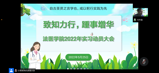 (文/图 吴琼)为保证学生实习工作顺利开展,5月25日晚,法医学院在老实验楼443会议室以线上线下相结合形式举行了2018级“致知力行,踵事增华”实习动员大会,法医学院副院长付升旗、教学管理与专业建设办公室主任汤政、学生工作办公室副主任王敬、辅导员吴琼和2018级全体学生参加了会议,会议由王敬主持。