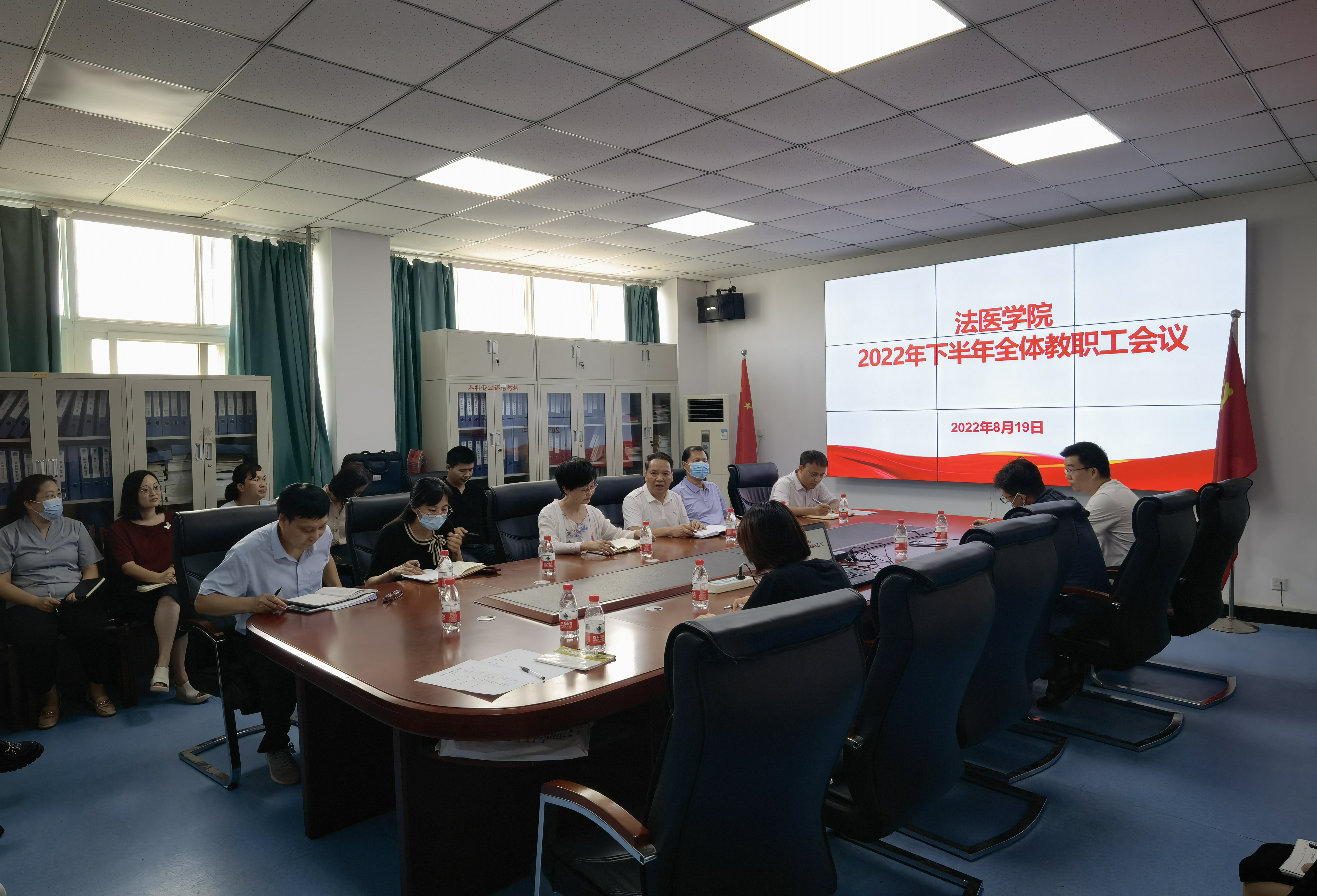 (文/图 涂飞)8月19日下午,我院在求真楼443会议室召开了2022年下半年新学期全体教职工会议,基础医学院与法医学院党委书记王宏玲,法医学院院长王庆志,基础医学院与法医学院党委副书记李照勇、白婕,法医学院副院长付升旗、何广杰出席会议。法医学院全体教职工参加了会议。王庆志主持会议。