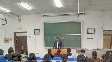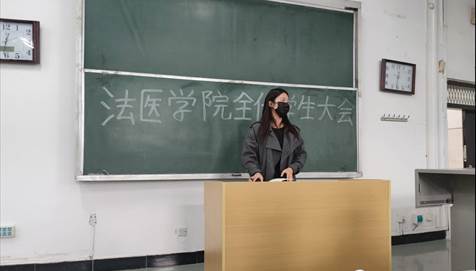 为持续做好学院疫情防控和安全稳定工作,10月13日,我院在2202教室召开疫情防控和安全稳定教育全体学生大会,法医学院副院长付升旗、辅导员吴琼和2019、2020、2021、2022级全体学生参会。