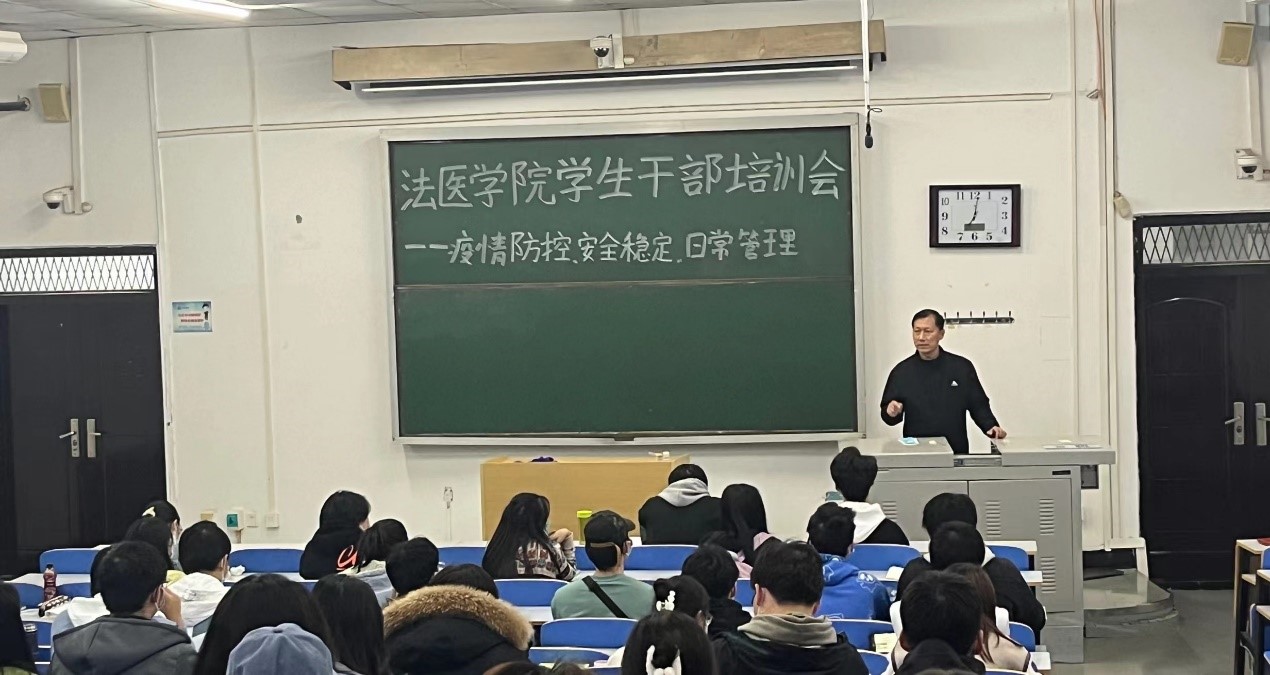 (文/图 吴琼)学生干部是学生自我教育、自我管理的主体,在学生管理工作中发挥着至关重要的作用。为调动广大学生干部的积极性,凝聚同心抗“疫”合力,全力助力学生管理工作有序开展,营造健康、安全、和谐的校园生活和学习环境,11月15日晚19时,法医学院于第二教学楼2301召开了学生干部培训会,就疫情防控、安全稳定、日常管理方面的学生工作进行再安排、再部署、再强调。会议由法医学院党委副书记李照勇主讲,辅导员吴琼和和学生会干部、各班班长团支、全体寝室长参加了会议。