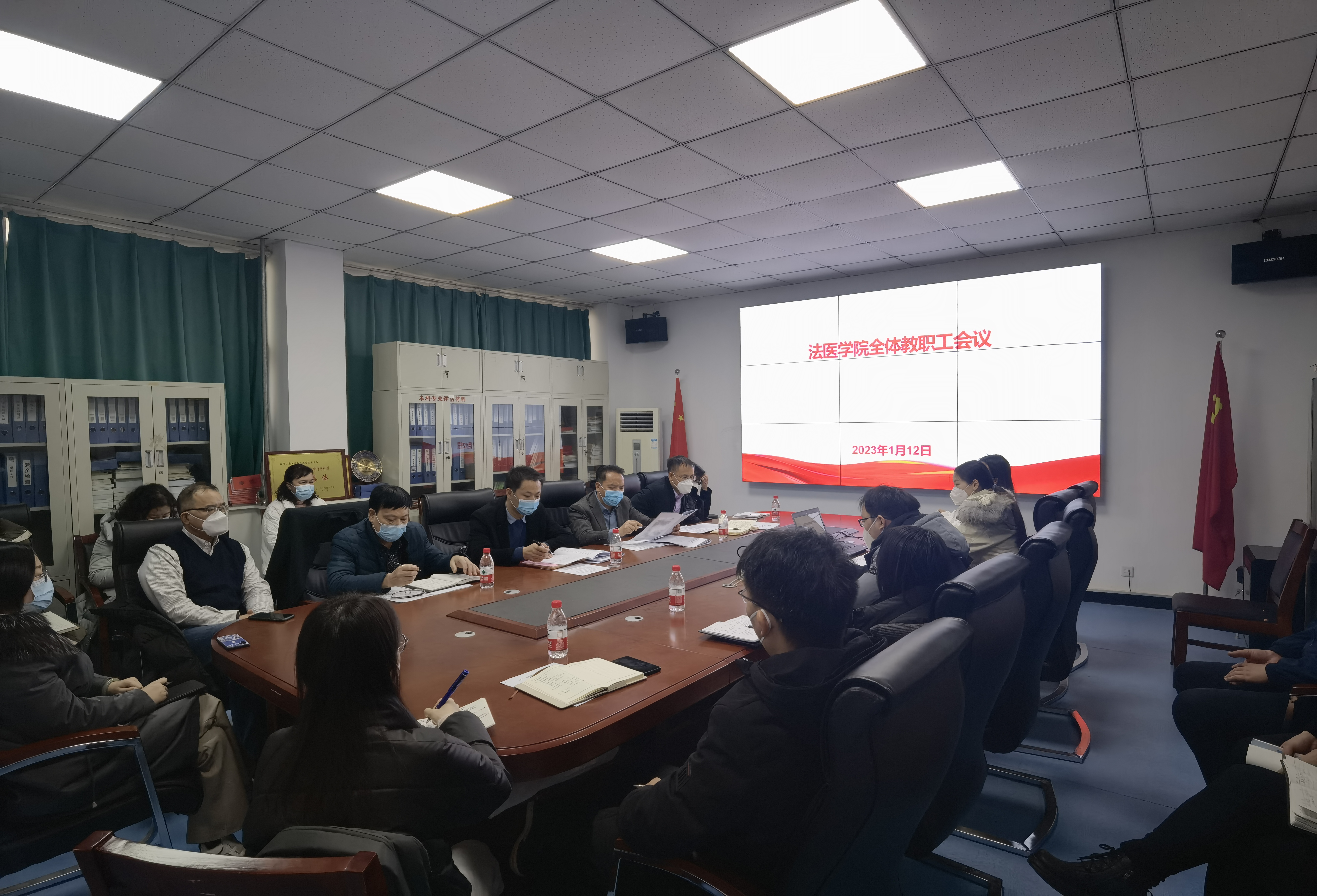 (文/图 涂飞)1月12日,法医学院在求真楼四楼会议室召开全体教职工会议,法医学院党委书记赵宝强、法医学院院长王庆志、副院长付升旗、何广杰出席会议,全体教职工参加会议。会议由王庆志主持。