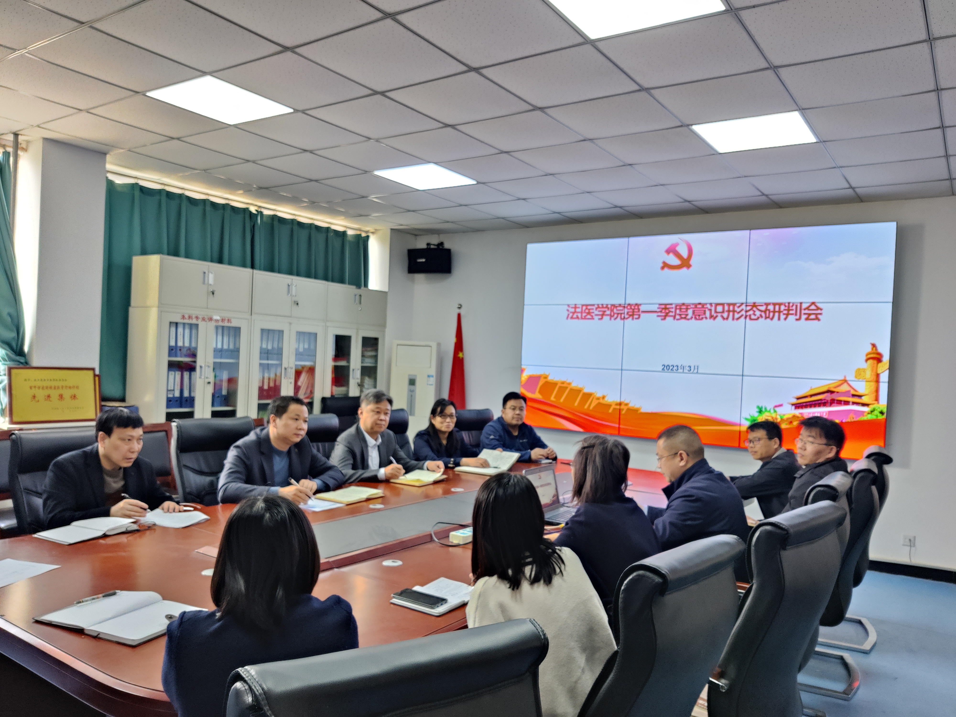 (文/涂飞 图/汤政)3月28日,法医学院在求真楼四楼会议室召开2023年第一季度意识形态研判会,学院党委书记赵宝强、院长杨志军、副院长付升旗、何广杰出席会议,全体科级干部参加会议。会议由赵宝强主持。