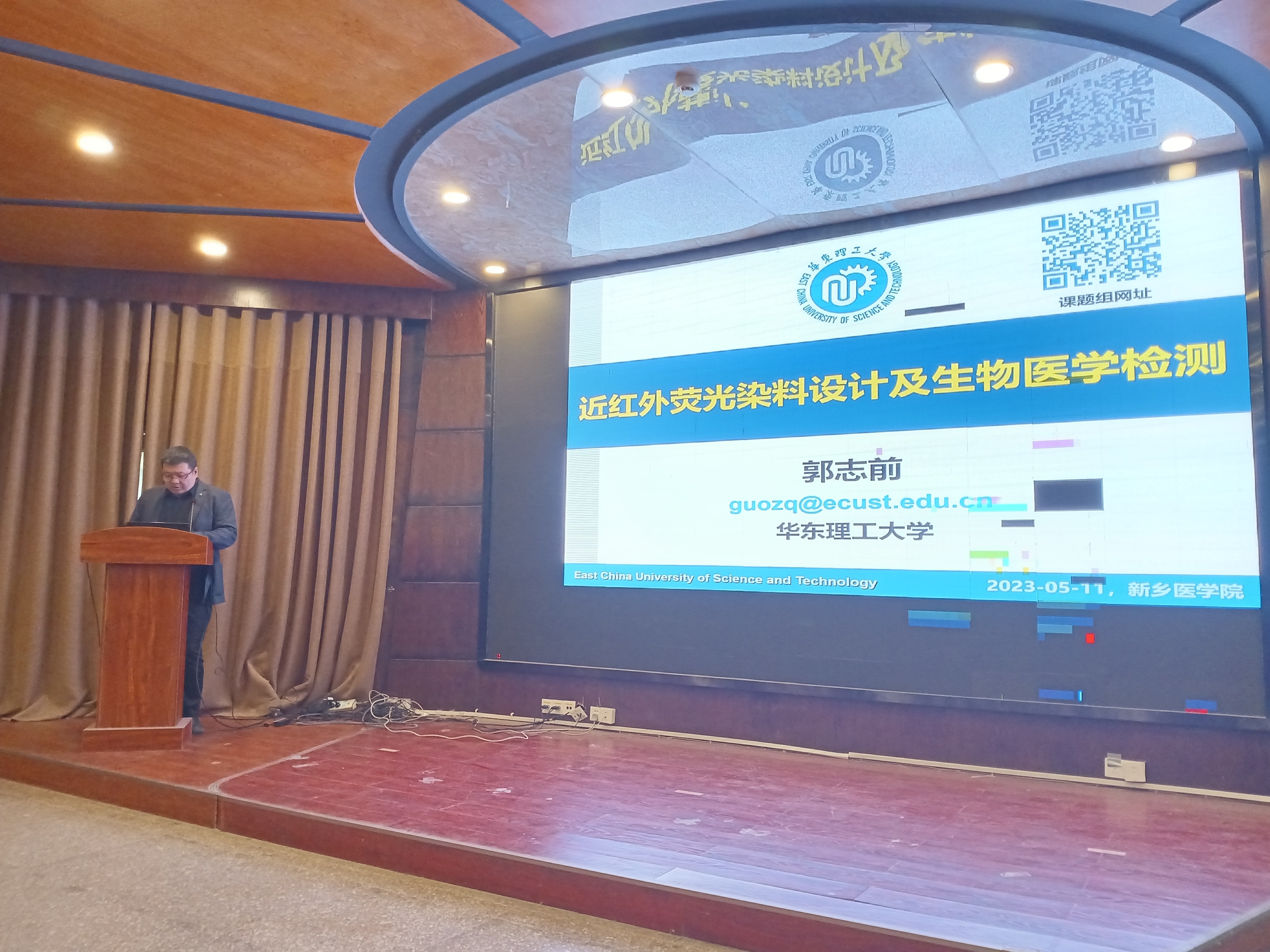 接下来,华东理工大学郭志前教授做了题为“近红外荧光染料与生物医学检测”的专题报告。郭志前教授为国家杰出青年科学基金;国家优秀青年基金;上海市曙光学者;上海市青年杰出贡献奖;曾获得国家自然科学奖二等奖;上海青年科技杰出贡献奖;上海市自然科学奖一等奖。兼任《Chinese Chemical Letter》编委、《Chinese Journal of Chemical Engineering》青年编委、《发光学报》青年编委等。他主要从事精细有机化工基础应用研究,迄今,以第一或通讯作者在Chem. Soc. Rev.、Nature Protocols、Nature Comm.、J. Am. Chem. Soc.、Angew. Chem. Int. Ed.等期刊发表论文106篇,他引10000余次,H-index指数51。注重产业化应用转化,申请发明专利15项,已授权8项,替代市售传统探针试剂,高性能喹啉腈染料商品化销售;高端荧光诊断试剂在Sigma-Alidich、百灵威等公司销售。郭志前教授的报告阐述了基于分子结构理性设计喹啉腈等近红外染料母体,提升近红外光谱响应、分子识别性能,在生物医学影像与检测中拓展高端近红外染料产品功能,开展荧光活体成像分析、化学发光体外诊断方面的基础应用研究。