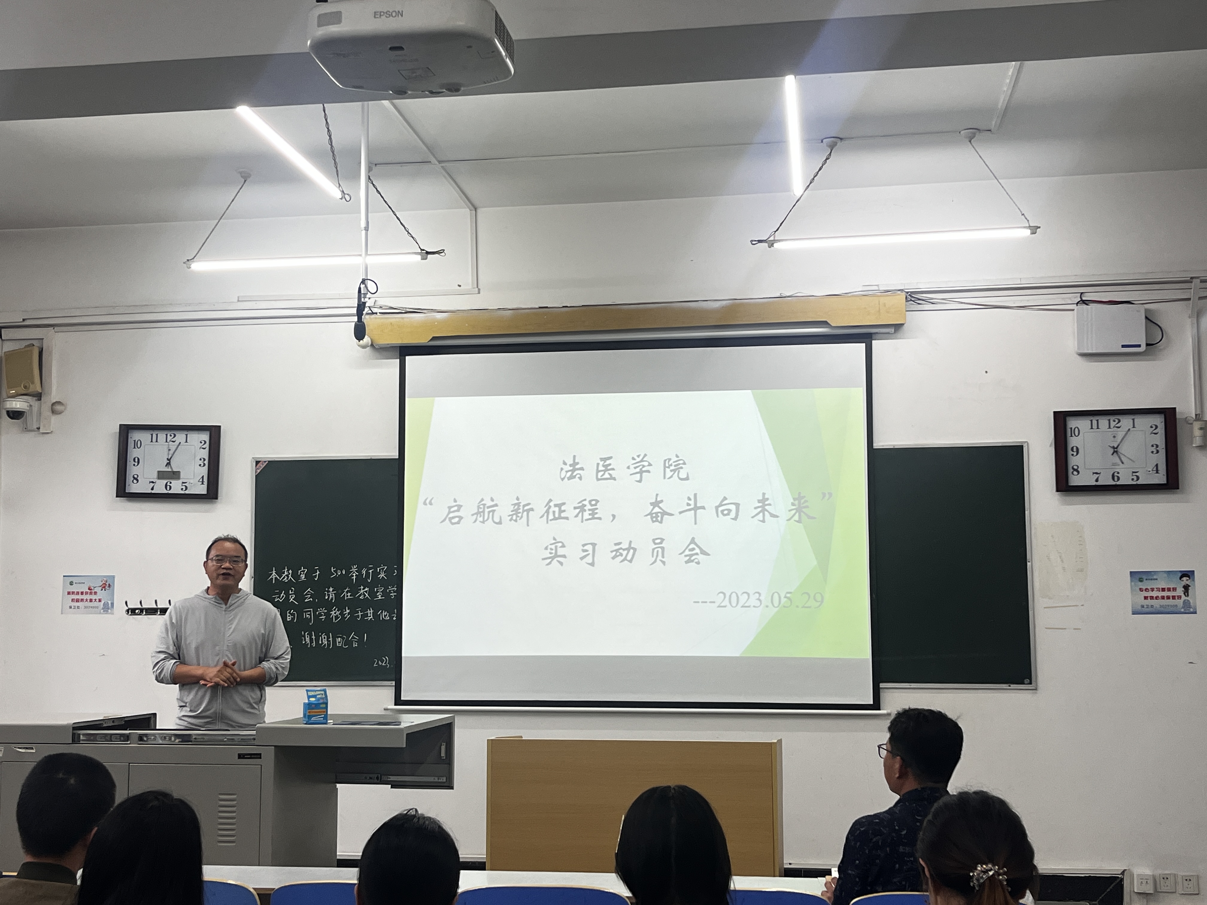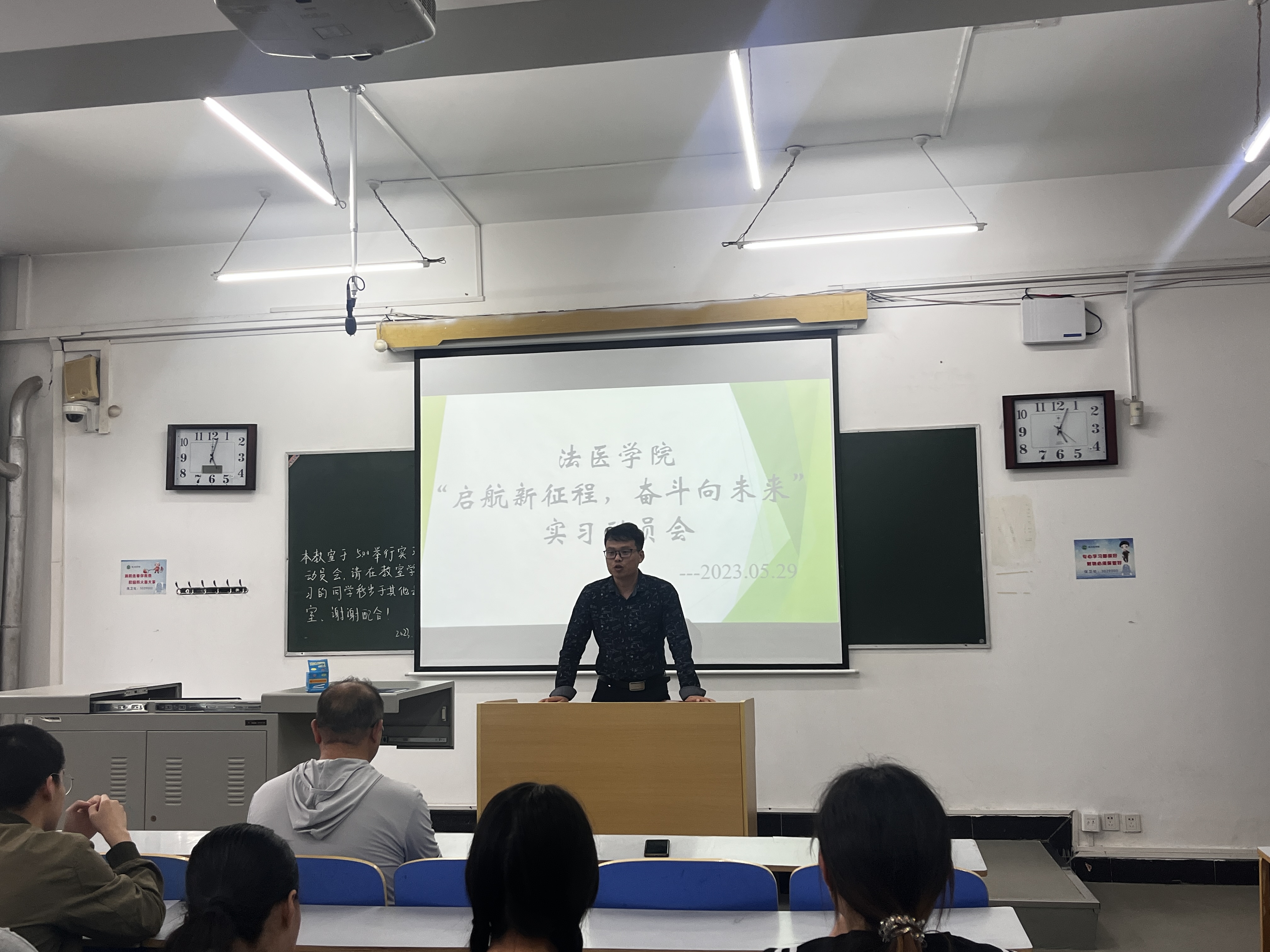 (文/王敬、图/吴琼)为进一步推进学生实习工作的顺利开展,引导学生做好实习的心理准备,树立正确的实习观,5月29日下午,我院在博济楼2106召开2019级学生岗位实习动员大会。法医学院副书记尚万兵,教学管理与专业建设办公室主任汤政、学生工作办公室副主任王敬、辅导员吴琼以及2019级全体学生参加了会议,会议由吴琼主持。