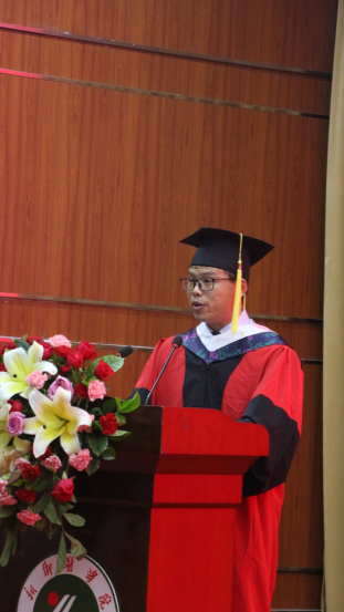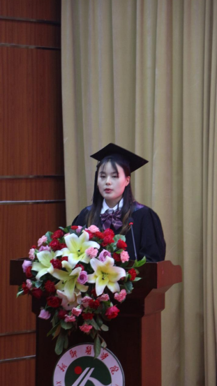 硕士毕业生代表王艺凯分享了其读研期间的美好时光和学习感悟,代表学院毕业生表达了对母校的深情,对学院的感恩,对老师和同学的衷心祝愿。