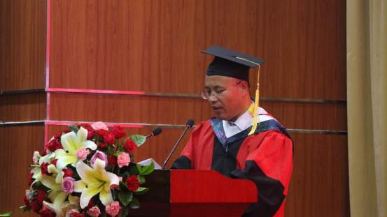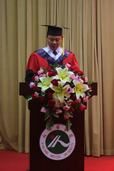 本科毕业生代表蔡锦回顾了五年大学生活的精彩瞬间,感谢学校、学院的悉心培养,表示会不忘初心,谨记师长们的教诲,立志做有理想、敢担当、能吃苦、肯奋斗的新时代好青年。
