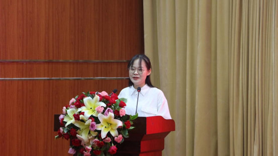 2019级学生刘凤娇代表在校生对全体毕业生送上衷心的祝贺与诚挚的祝福,表示未来将以学长学姐为榜样,认真踏实、勤勉刻苦,以实际行动为母校争光,为学院添彩。
