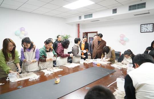 在图书信息楼三楼会议室,由外语学院工会承办的“三八”妇女节陶艺沙龙活动同时开展。陶艺讲师简单介绍陶土特性、制作工序及注意事项,指导女职工挑选制作模型,体验制坯、修坯,感受手工制作过程中力与美的融合。