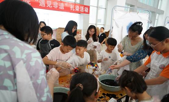 为丰富我校文化生活,关心关爱教职工子女成长,弘扬中华民族优秀传统文化,让广大教职工直观感受非遗扎染的魅力、体验扎染的乐趣,6月1日,校工会组织开展“遇见非遗”扎染传承体验活动,学校教职工及子女150余人参加。