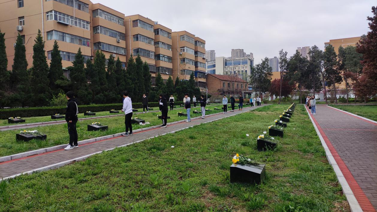 随后,师生代表前往各位革命烈士的墓碑前,怀着真诚与崇敬的心情,向革命先烈鞠躬并为烈士们献上一束束鲜花,感恩革命先烈于战乱纷飞的年代不屈不挠,一片丹心唯报国,换来我们国富民强、国泰民安的如今。我院学子通过将鲜花留在烈士墓前,传达对烈士的深深感激与深切怀念。
