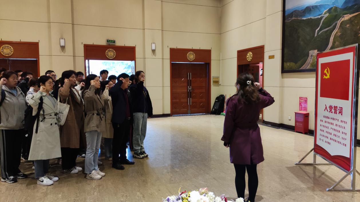 在烈士事迹陈列馆馆口,革命先烈的雕像前,由我院教师代表领誓,师生重温入党誓词,提醒学生党员不忘初心,牢记使命,敢于攀登、积极进取,传承红色精神,做有理想、有本领、有担当的新时代青年,肩负起实现中华民族伟大复兴的历史重任,为共产主义事业奋斗终生。