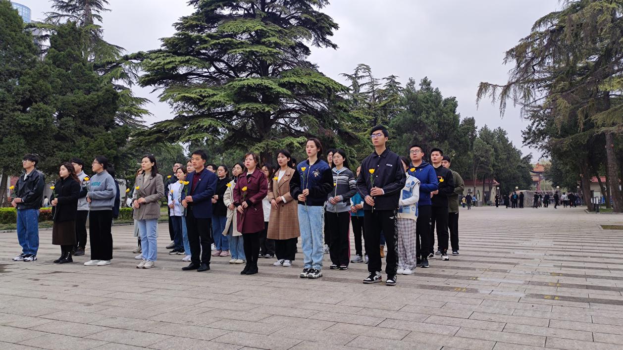 为缅怀革命先烈,学习英雄事迹,弘扬民族精神,加强爱国主义教育,继承和发扬革命先烈的优秀思想,给大学生树立正确的世界观、人生观、价值观,培养学生做有理想、有担当的新时代青年,4月3日,在清明节来临之际,我院教师代表及党员、共青团员等学生代表共同走进新乡市烈士陵园,开展清明节祭扫英烈活动。