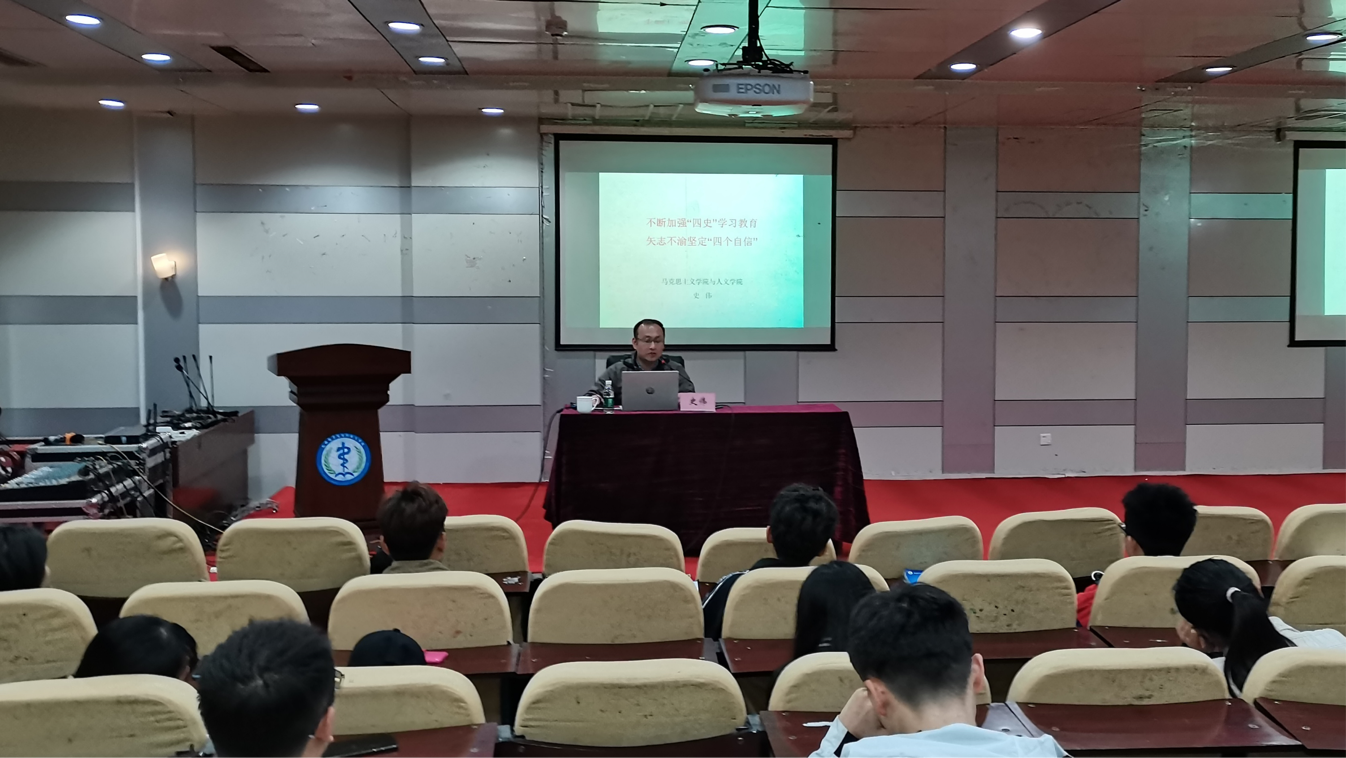 4月7日,我院举办党史学习教育暨“铭学大讲堂”第二讲专题讲座,马克思主义学院与人文学院党委副书记史伟以《不断加强“四史”学习教育、矢志不渝坚定“四个自信”》为题,为学院师生党员、学生代表做了报告。