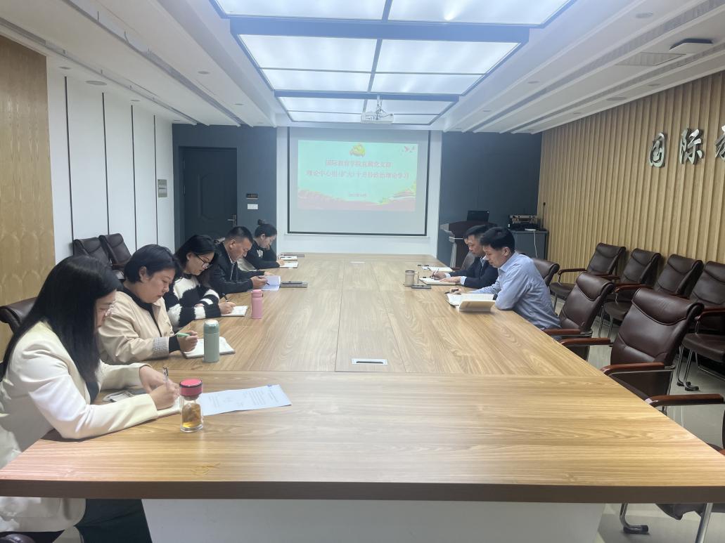 10月31日下午,国际教育学院直属党支部在学院会议室召开理论学习中心组(扩大)十月份政治理论学习会。会议由直属党支部书记袁磊主持,支部委员及全体党员参加此次学习会。