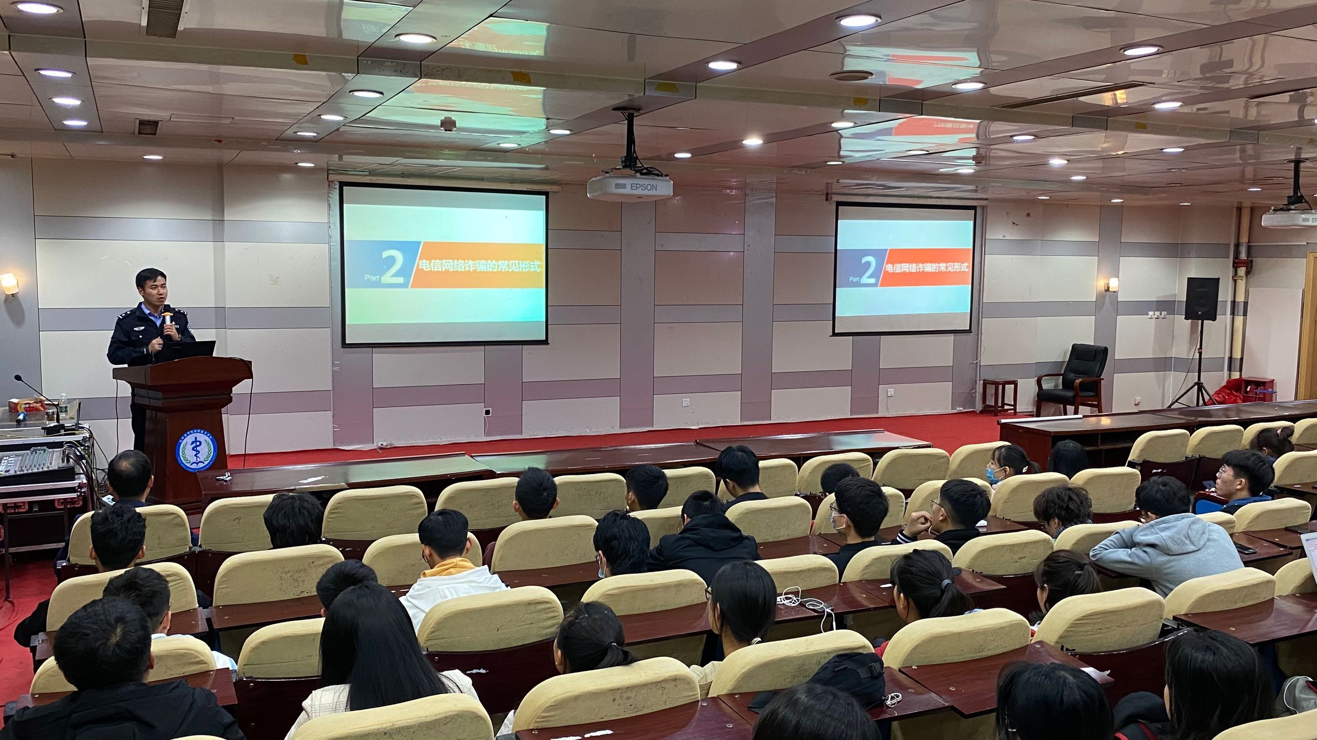 10月28日晚,我院防范电信诈骗教育专题讲座在学校第二报告厅顺利举办。本次专题讲座以“宣传防范电信诈骗”为主题,由新乡市公安局反诈骗支队张阳警官担任主讲,学院党委副书记李强、保卫处综合科科长贺宝明、院团委相关负责老师和2020级学生代表近200人聆听了讲座。讲座由李强主持。