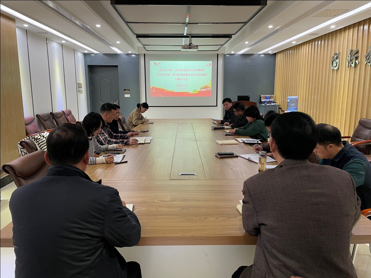 为进一步强化全院党政干部规则意识、制度意识、加强工作规范性,10月25日上午,我院在会议室召开《华亿在线手机版(大中国区)二级学院党委会议议事规则》及《华亿在线手机版(大中国区)二级学院党政联席会议议事规则》专题学习会。学院领导班子成员及全体科级干部参加会议。会议由党委书记王正晓主持。