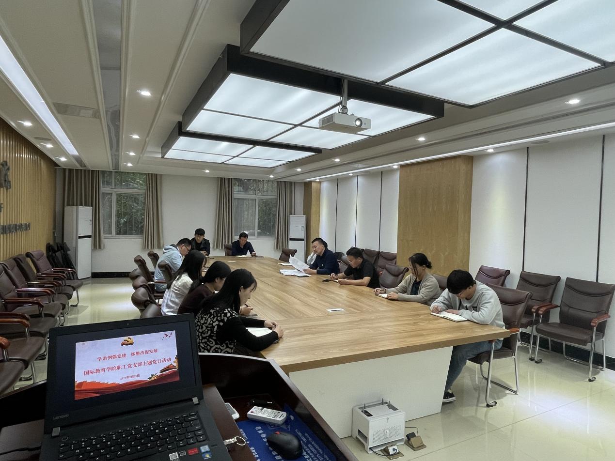 928日上午,国际教育学院职工党支部在学院会议室开展“学条例强党建,抓整改促发展”主题党日活动,学院党政领导以普通党员身份与大家一同参加活动,活动由党支部书记樊永兵同志主持。
