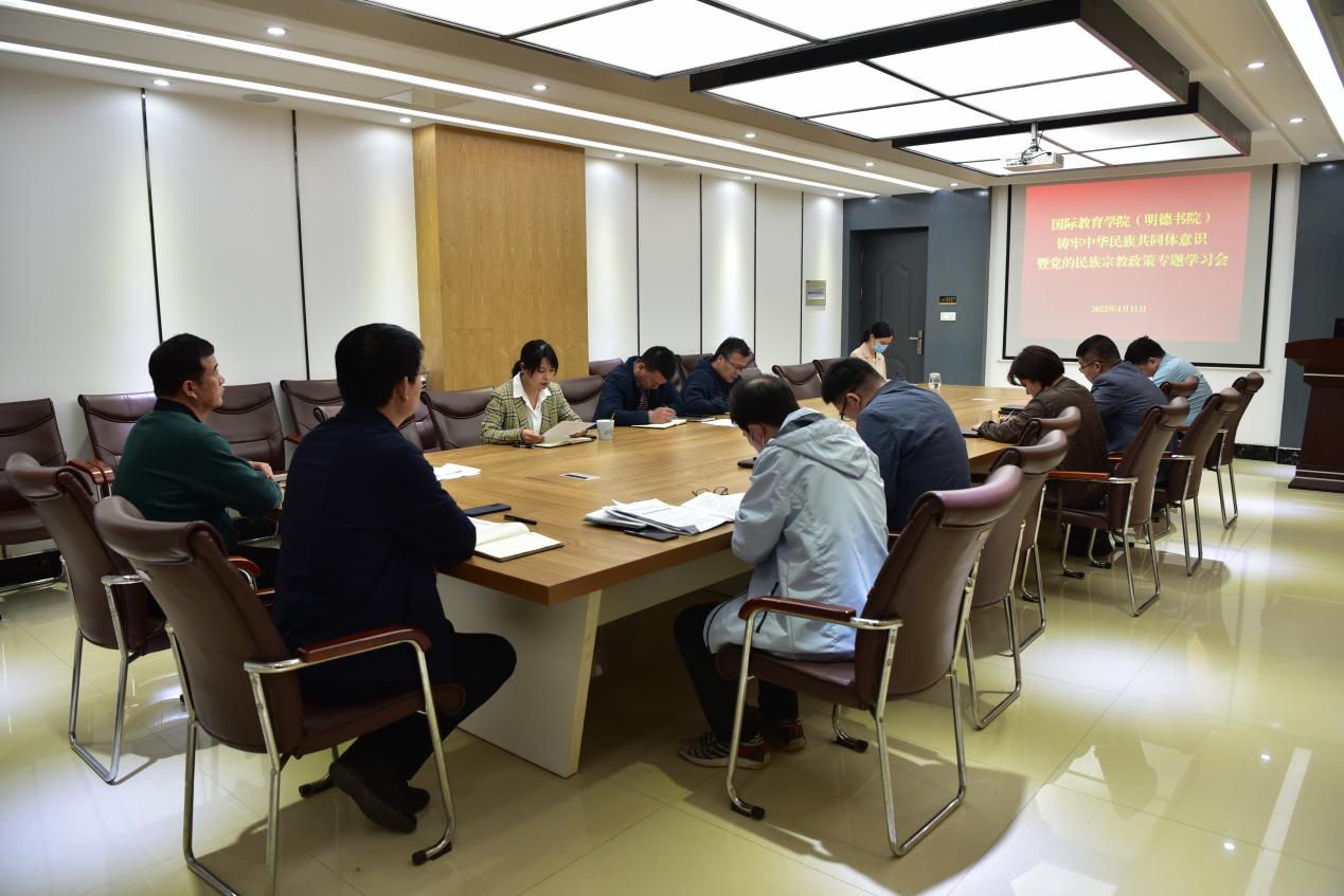 为切实做好铸牢中华民族共同体意识宣传教育工作,进一步宣传党的民族宗教政策,4月11日,我院在会议室召开铸牢中华民族共同体意识暨党的民族宗教政策专题学习会。我院党委理论学习中心组成员,全体科级干部参加了会议,会议由我院党委书记王正晓主持。
