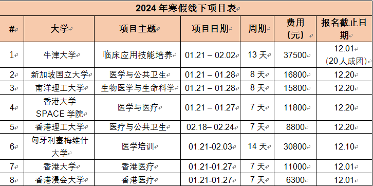 1.报名时间:请留意各项目报名截止时间,由于需要办理护照签证或者港澳通行证签注,请务必提前报名。