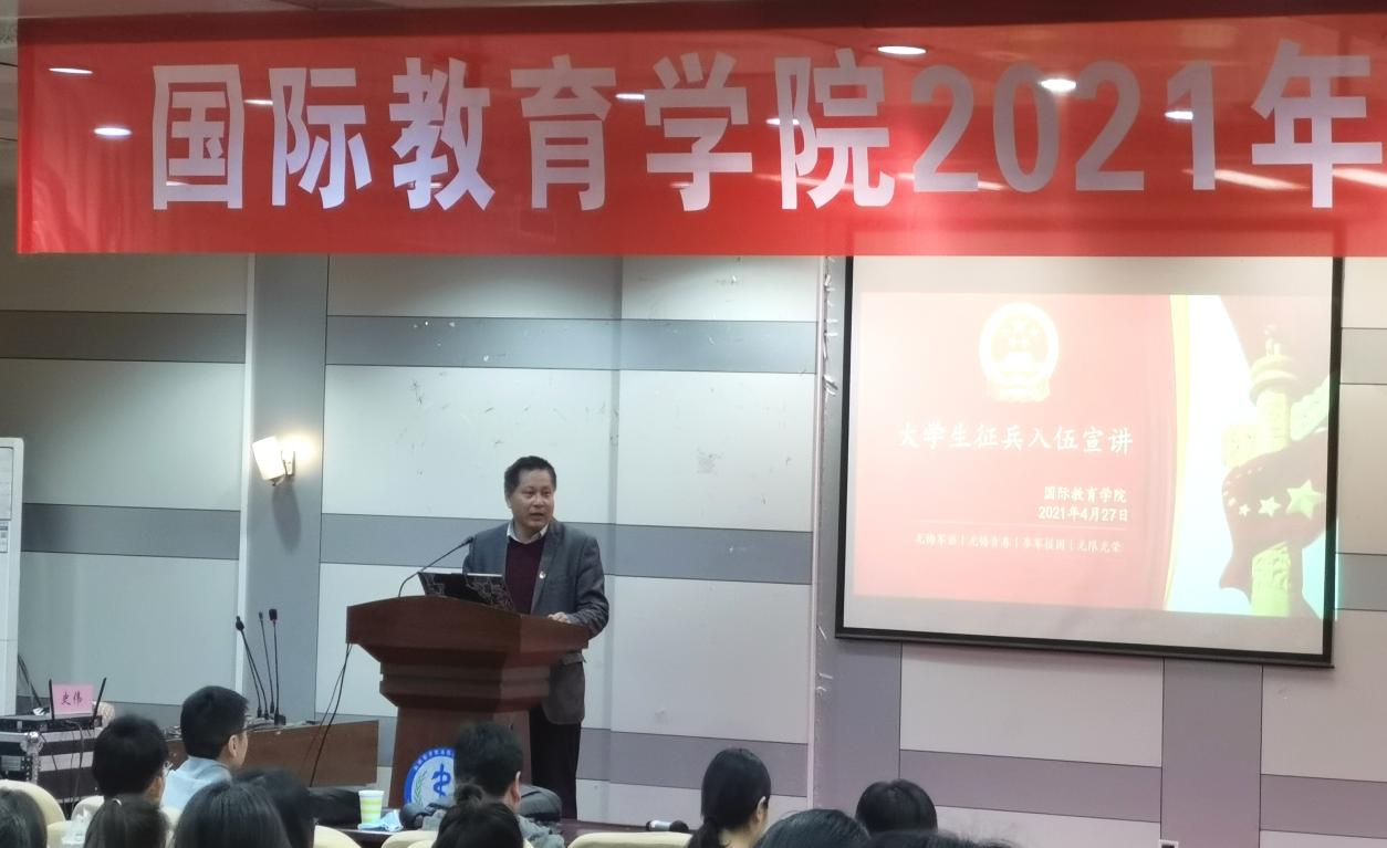 4月27日晚,我院2021年秋季征兵入伍宣讲会在学校第二报告厅举行,校党委学生工作部副部长、武装部副部长石玉平,国防教育科副科长晋海超及相关负责老师出席会议,学院团委全体辅导员和200余名在校学生参会。