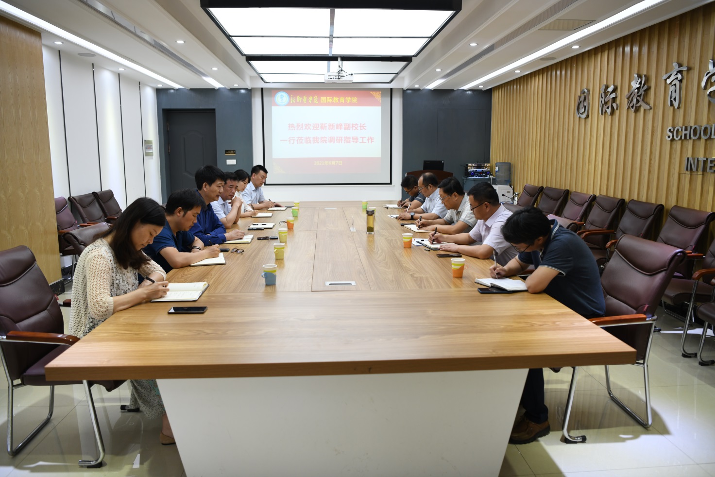 6月7日下午,校党委委员、副校长靳新峰到国际教育学院调研,就务实推进书院制育人模式改革工作召开座谈会。学生处处长姬广军、后勤管理与服务中心主任李继煜、副主任雷好利等相关人员陪同调研。学院党委书记王正晓、院长王玉安、副书记李强、副院长赵民及相关科室人员参加调研座谈会。
