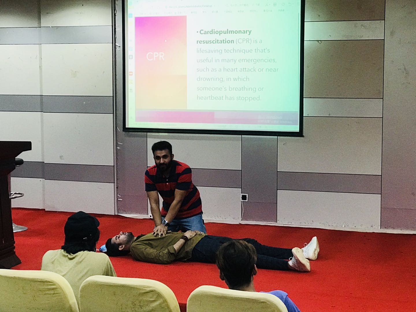本次讲座以创新的学习形式,组织国际学生给同学们上课。即学生为“讲授者”,自主备课确定上课内容;其他学生为“听讲者”,在疑问处发言,参与互动,并做出课后评价。参与本次讲课活动的两位主讲学生是2016级的艾迪和2017级的丹尼斯。他们分别为大家呈现了关于急救知识和生殖系统方面知识的两节精彩讲座。讲座过程中,同学们认真听讲,积极互动,反响热烈。