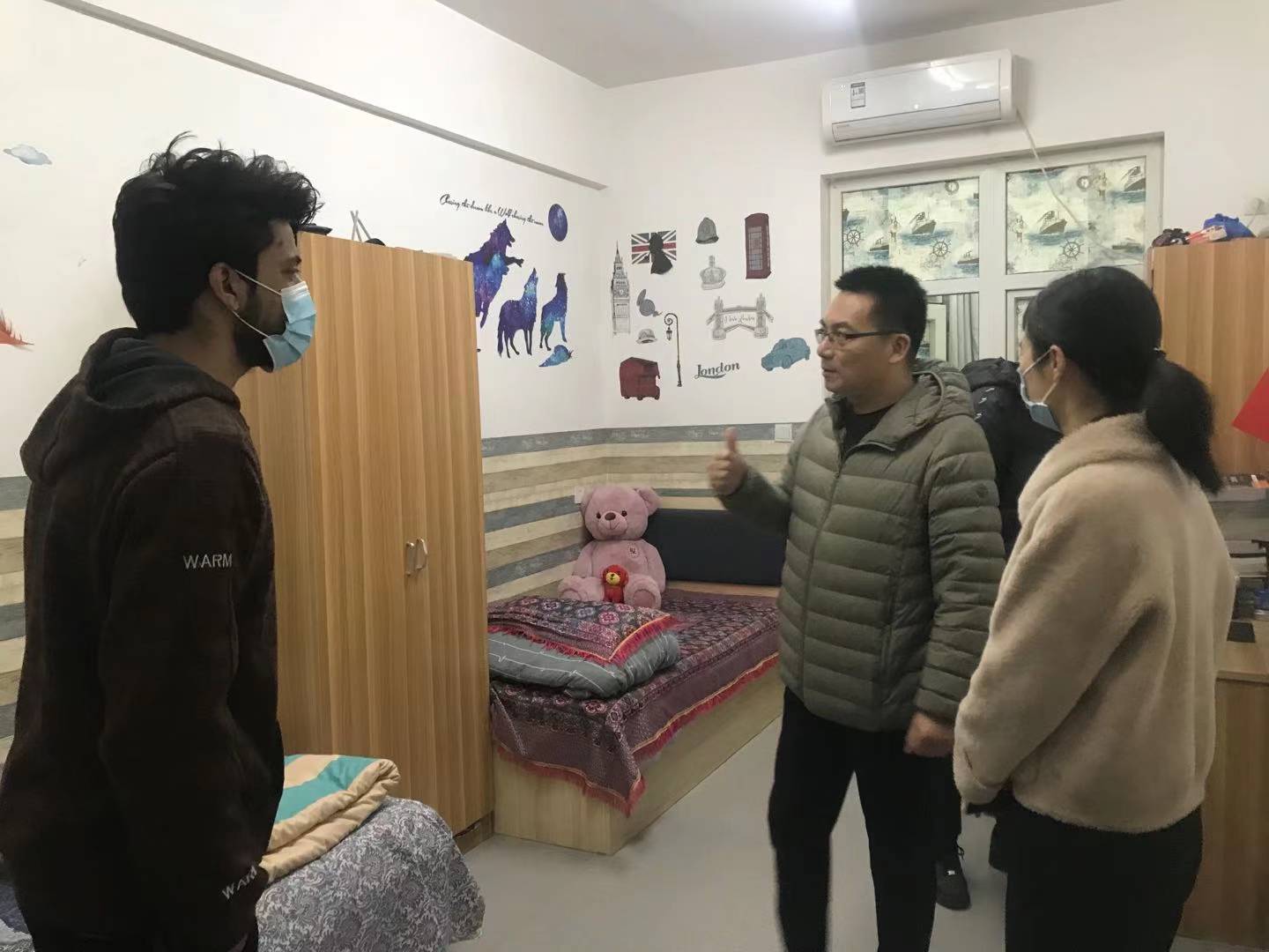 冬季是宿舍安全隐患的多发季节,国际学生宿舍安全一直是我院高度重视的问题,为消除学生宿舍内的各类安全隐患,同时严格按照学校疫情防控规定的相关要求,谨防学生夜不归宿情况发生,切实维护校园安全稳定,近期,国际教育学院副院长李军及留学生科全体辅导员,对国际学生宿舍进行了系列检查。