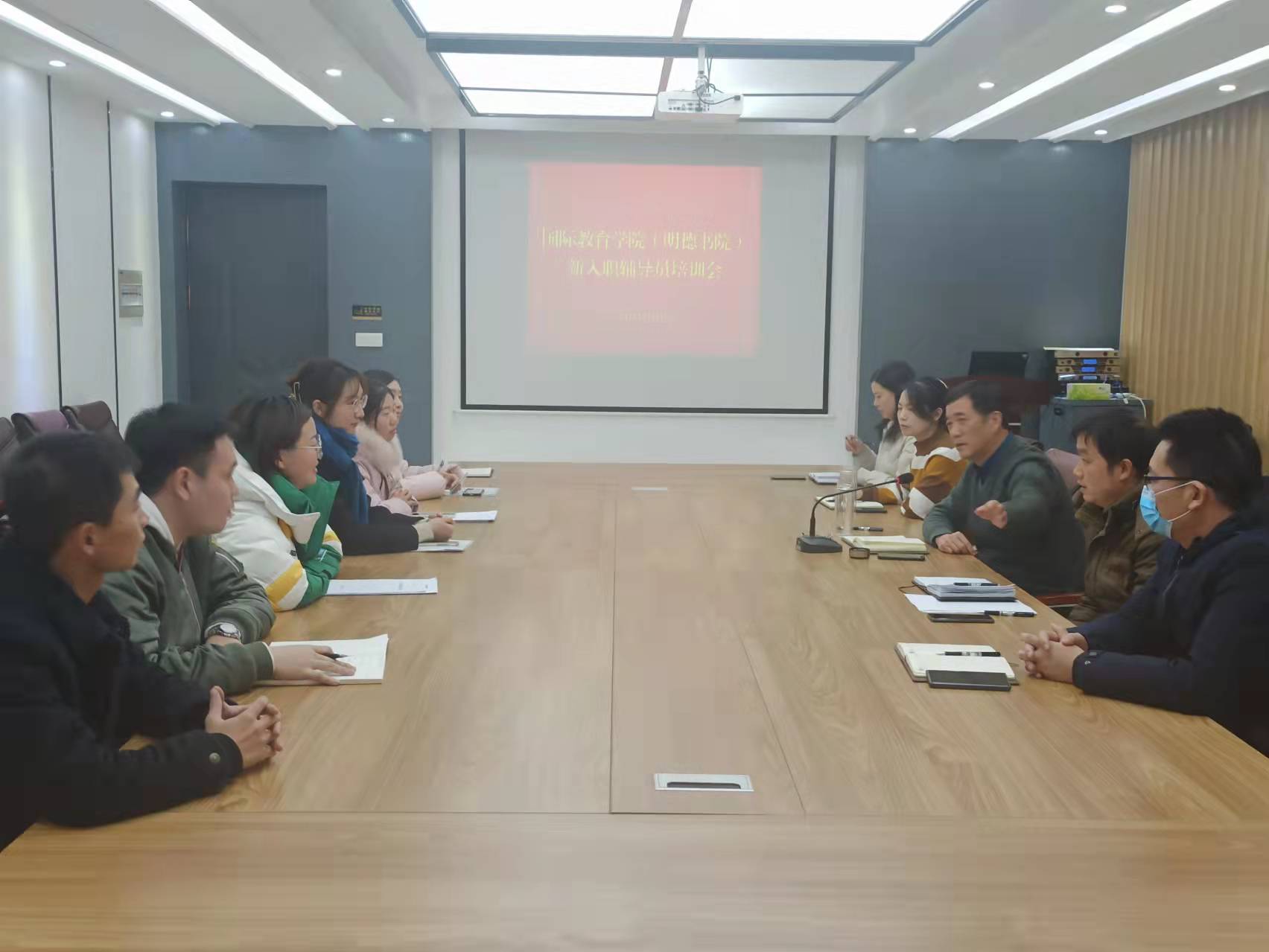 为帮助新进辅导员熟悉国际教育学院(明德书院),尽快转变角色,融入工作,12月31日下午学院召开新进辅导员培训会,院长王玉安、学院班子成员及分配到我院的6位新进辅导员参加本次培训会。