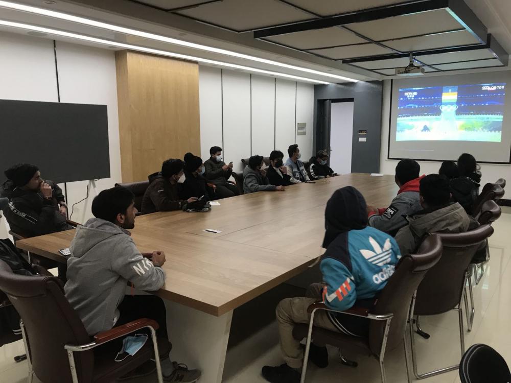 为让我校国际学生参与冬奥、助力冬奥、感受冬奥的魅力,特组织学生观看精彩绝伦的冬奥开幕式,为北京冬奥会和运动健儿录制加油视频。视频中境外国际学生用最诚挚的话语祝愿中国健儿在比赛之中取得佳绩。“Go ahead,look forward,believe in yourself and do your best and play freely”(勇往直前,向前看,相信自己,尽你最大的努力,自由发挥)。
