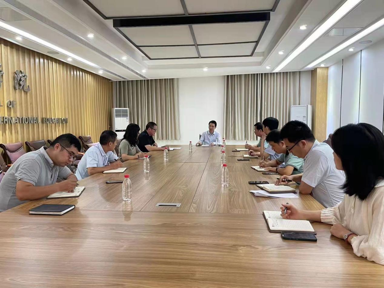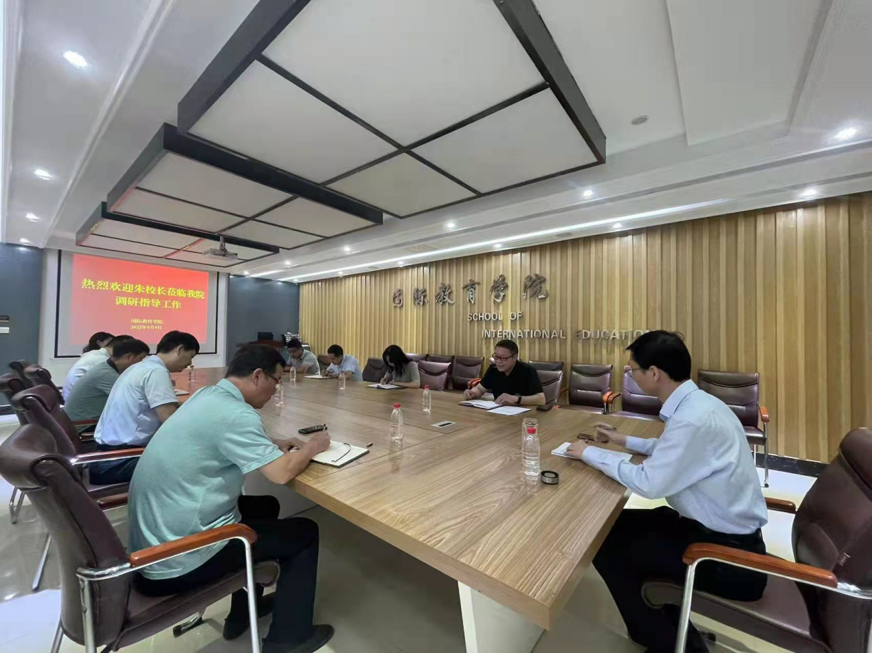 9月9日下午,校党委委员、副校长朱武凌到国际教育学院调研我校国际学生入境返校复学以及中外合作办学项目申报工作,国际交流处领导班子陪同调研,国际教育学院领导班子全体成员参加调研。