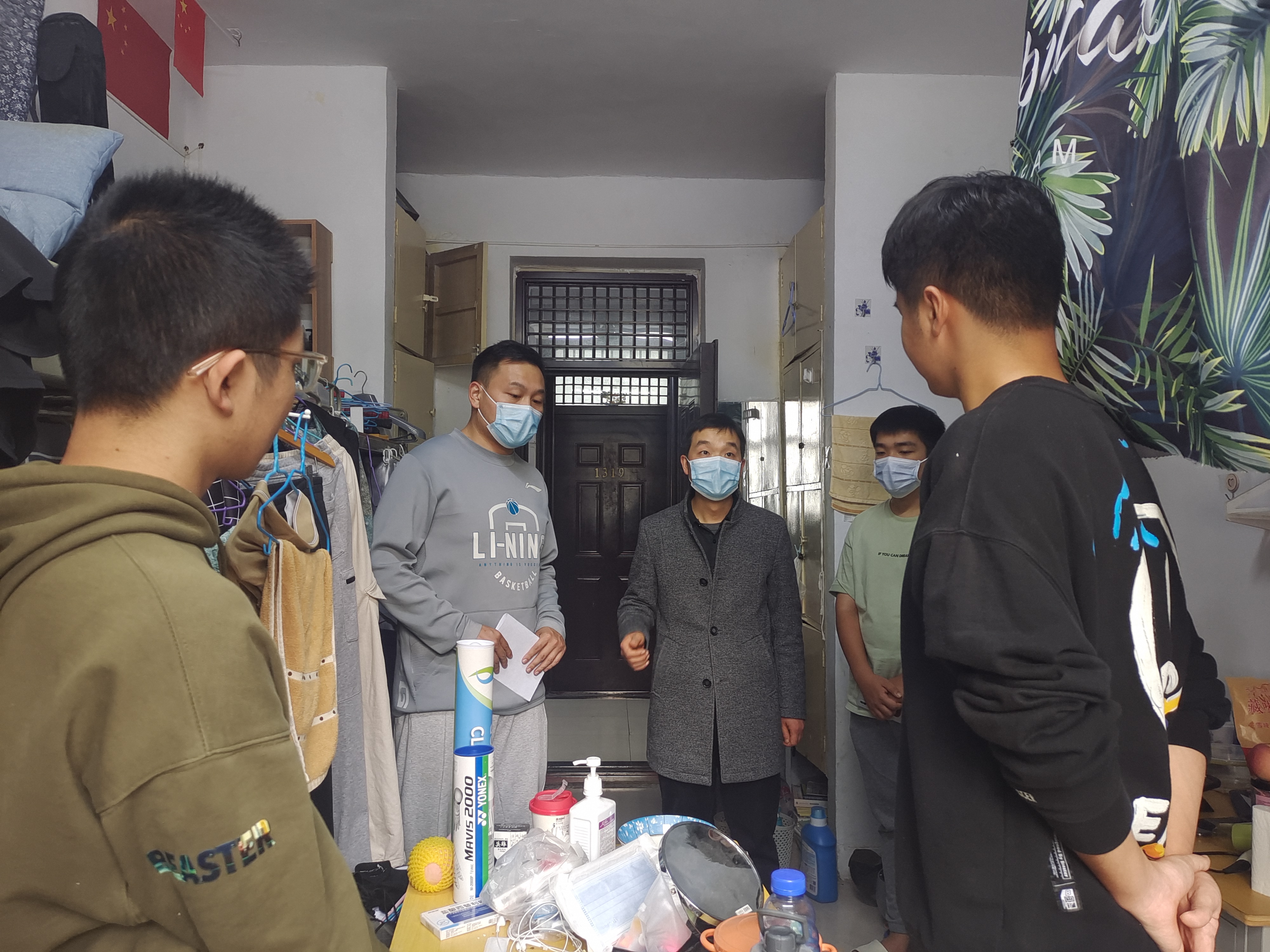 李强一行实地查看了学生宿舍的生活环境,并通过与同学们的亲切交谈,详细了解了同学们近期的线上学习情况、生活方面有何困难、当前的思想状况。李强向同学们传达了书院党政班子对同学们的深切关怀,介绍了当前学校和全省疫情防控的形势,提醒同学们要严格遵守学校疫情防控相关要求,合理安排作息时间,同时也要注意个人防护,外出打饭戴好口罩,保持好宿舍卫生。最后,值班老师们向同学们公布了联系方式,叮嘱同学们要保持乐观的心态面对疫情,值班老师们已经入住南校区务实楼,有任何困难可以及时联系值班老师寻求帮助。