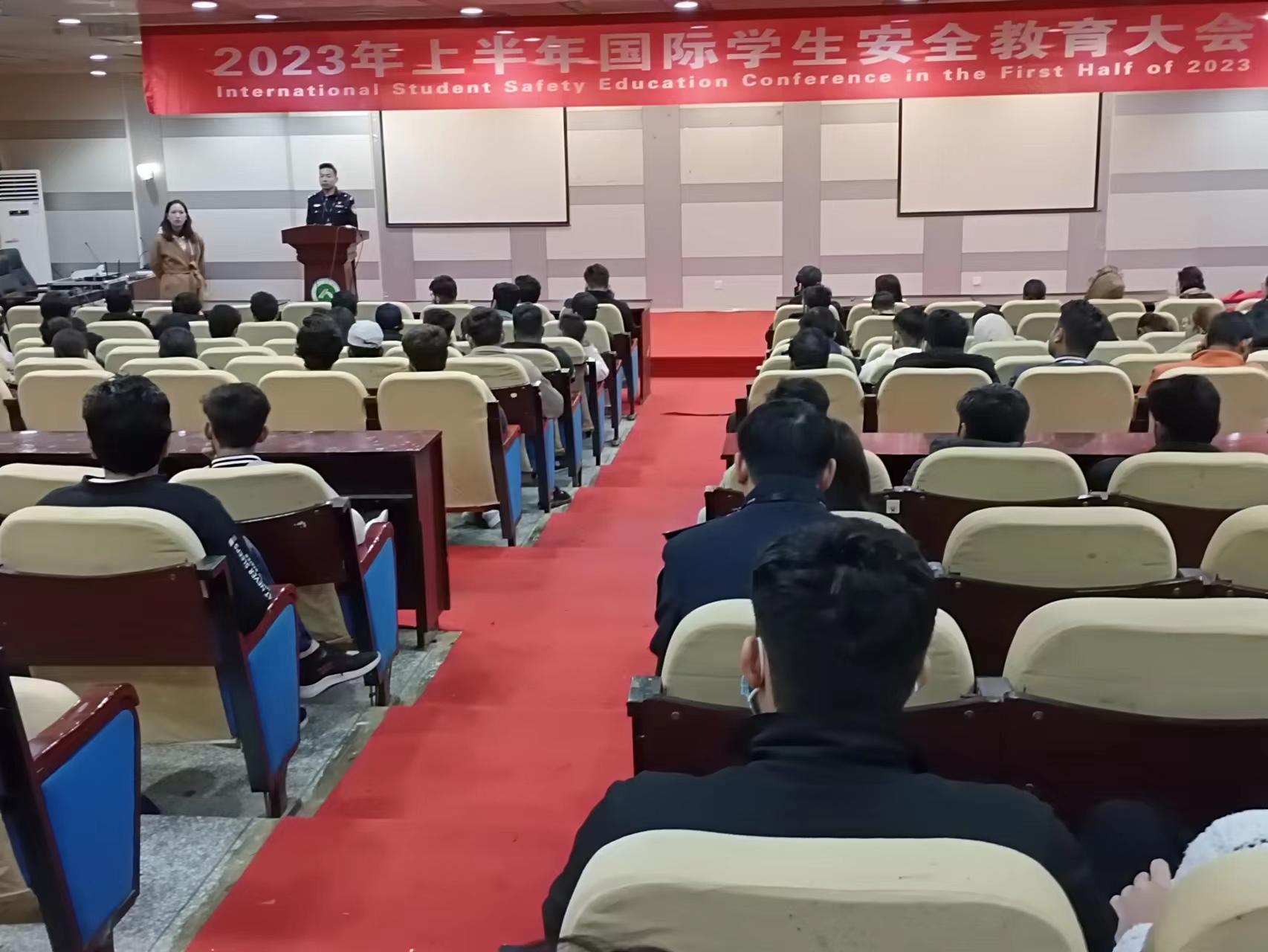 自首批返校国际学生抵校至今,我校在校国际学生人数已达三百余人,教育国际学生知法守法,提升国际学生的安全文明意识,保障在校国际学生安全,维护校园和谐与稳定迫在眉睫。为此,我院特邀请新乡市公安局洪门派出所的民警到校为学生开展治安法律法规的讲座。全体国际学生聆听了本次讲座。